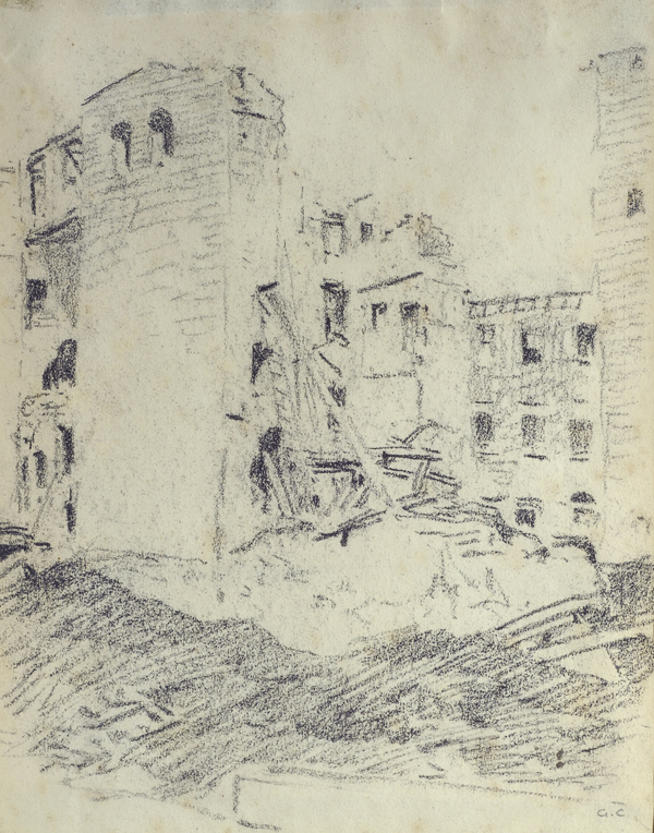 Galileo Chini (Firenze, 1873 - 1956) LE ROVINE A FIRENZE Carboncino su carta, cm. 29x39 Firma in basso a destra.
