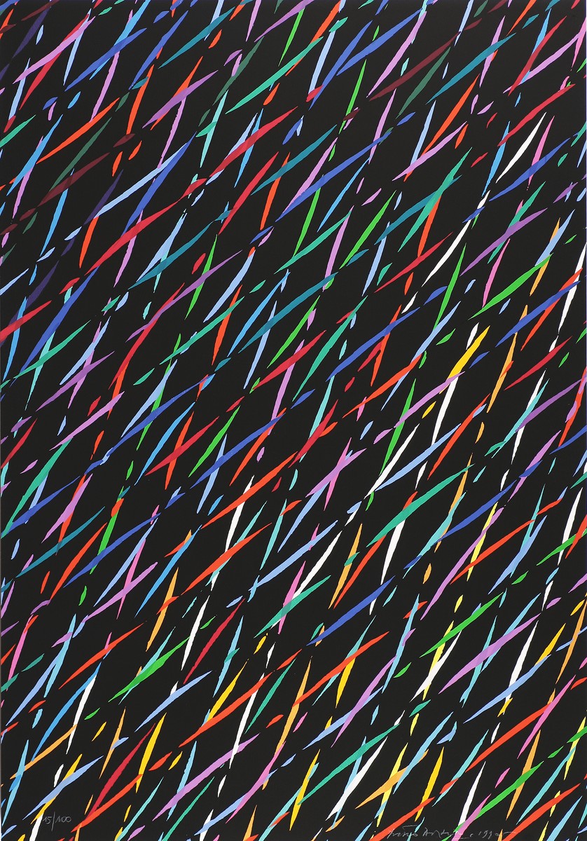 DORAZIO PIERO (1927 - 2005) Night Fall. 1990. Serigrafia. Cm 70,00 x 100,00. Cartella completa contenente n.1 serigrafia a 22 colori firmata e numerata dall'autore a gessetto. Tiratura: 100 + XXX. Edizioni Valente Arte Contemporanea, con testi di Giovanni Anzani. Stamperie Freecolour, Cantù. Confezione originale numerata. Esemplare: 97