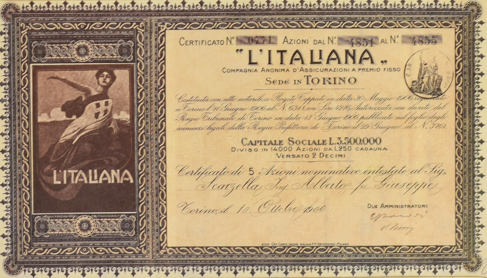 certificato di assicurazione contrassegnato a Torino il 10 ottobre 1906