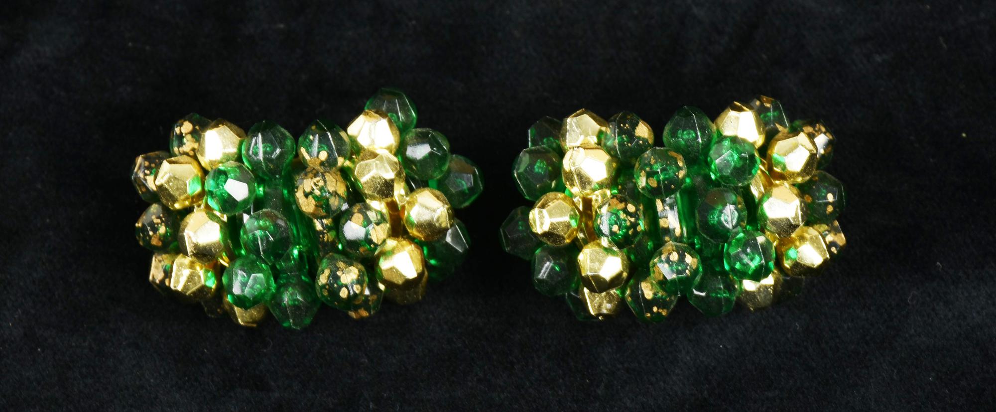 ORECCHINI in plastica imitazione smeraldi e pepite Francia, anni '80 cm 4