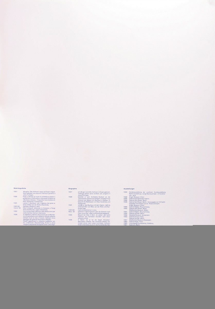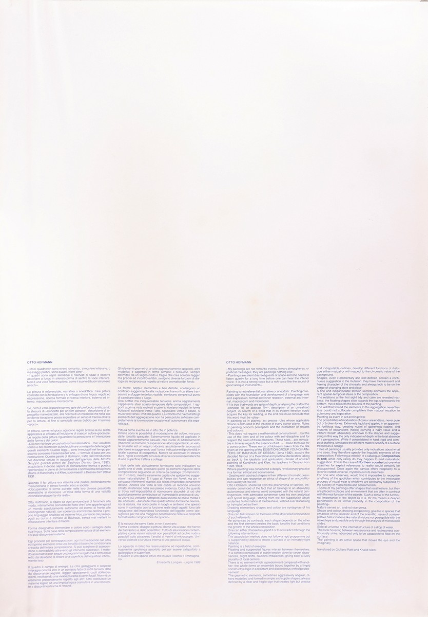 HOFFMANN OTTO (1907 - 1996) Otto Hoffmann (cartella). 1989. Serigrafia. Cm 100,00 x 70,00. Cartella completa contenente n.3 serigrafie firmate e numerate dall'autore a matita. Tiratura: 100 + XXX. Edizioni Valente Arte Contemporanea, con testi di Elisabetta Longari. Stamperie Oncolour, Cantù. Confezione originale numerata. Esemplare: 64
