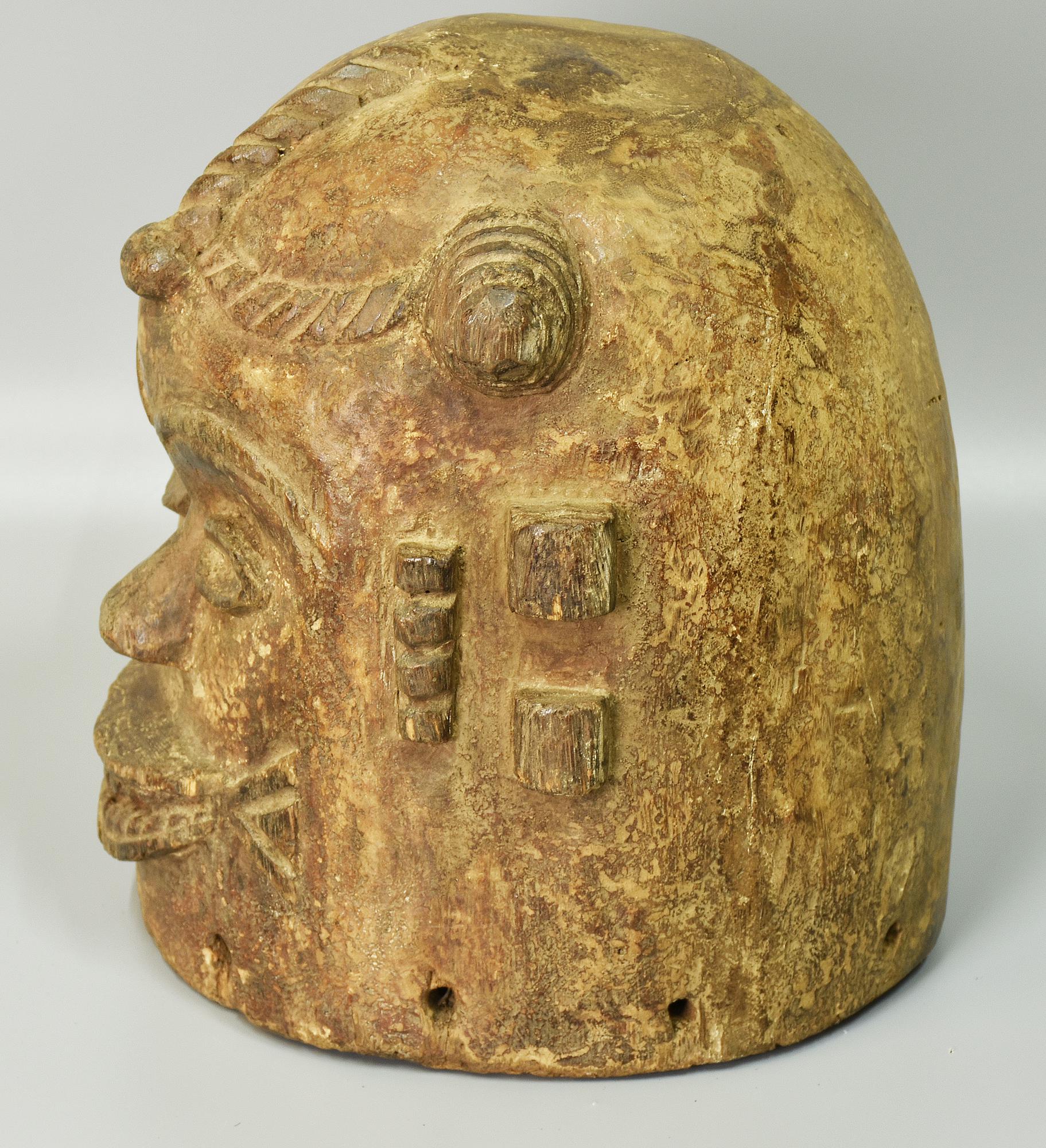 Casco Ibibio - NIGERIA casco in legno intagliato 30x27x26 cm XX secolo Lievi...