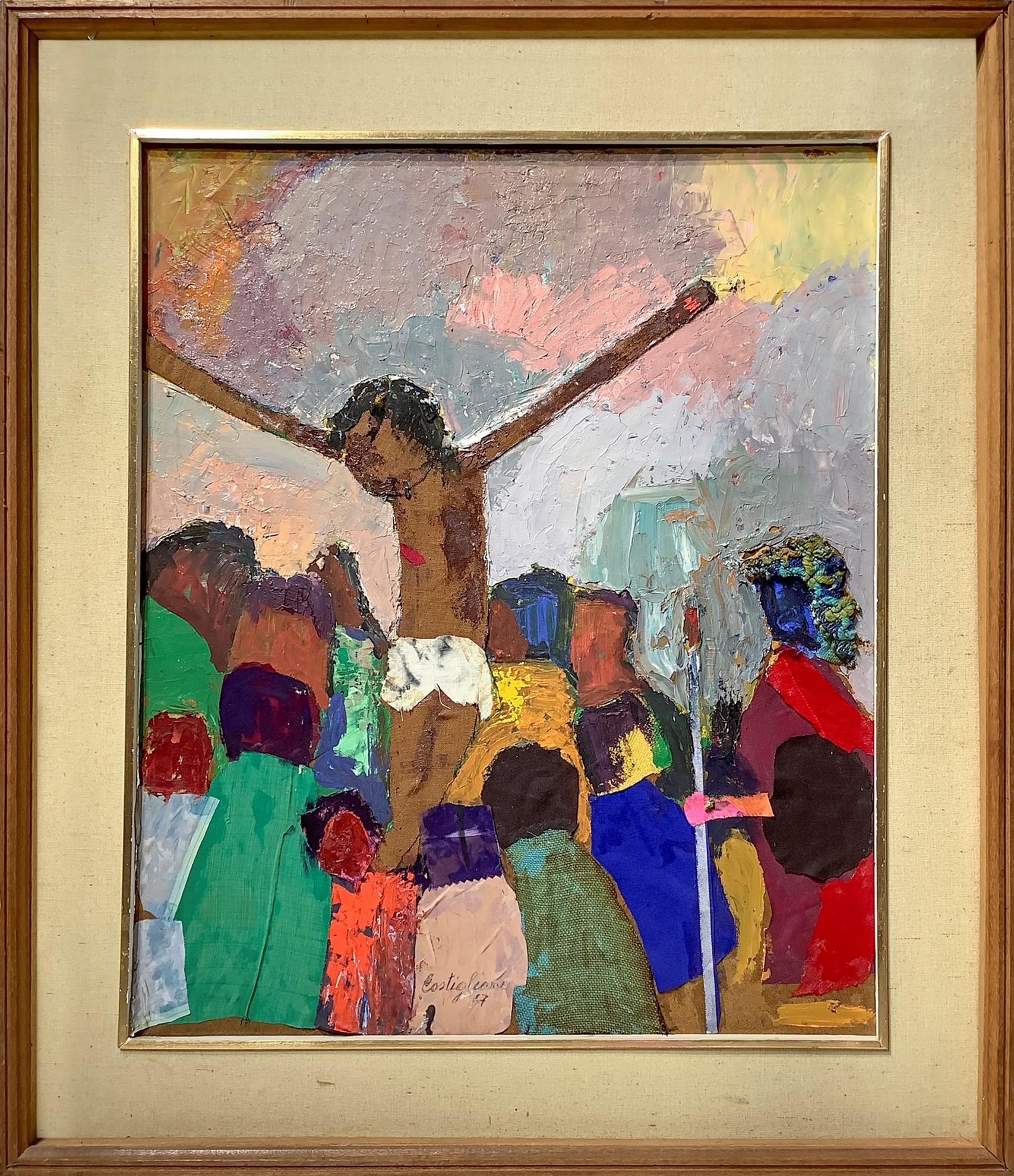 60x50 cm, in cornice 76x66 cm 1967 Crocifissione Dipinto a olio su masonite firmato Castiglione e datato 1967.