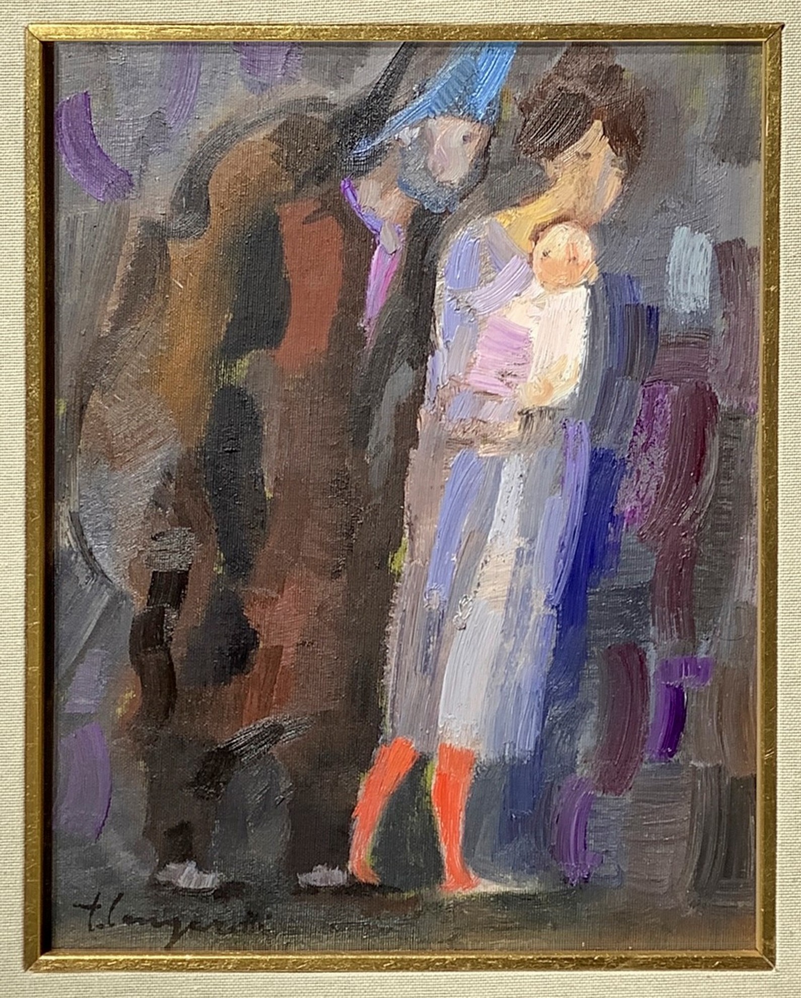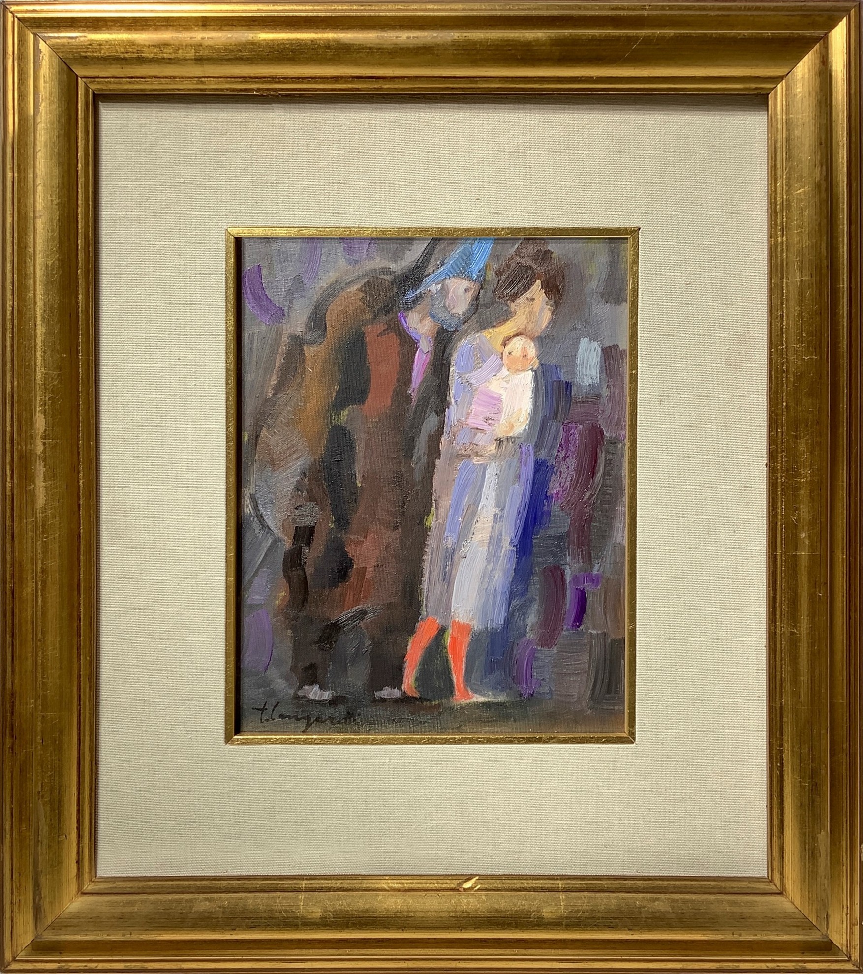 30x25 cm, in cornice 56x50 cm Famiglia in cammino Dipinto a olio su cartone telato