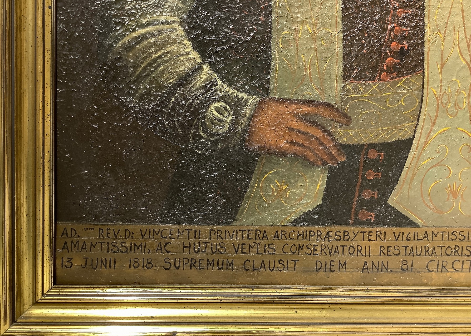 h 97 x 74 cm, in cornice h 110 x 89 cm XIX secolo Prelato Dipinto a olio su tela Pittore siciliano del XIX secolo.