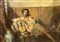 19x25 cm, in cornice coeva 38x45 cm Donna su sofà in abiti orientali Dipinto a olio su tela firmato in basso a destra Leopold de Moulignon.