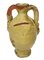 h 16 cm, Inizi XX secolo Piccolo vasetto di Caltagirone di figura antropomorfa Forma a salvadanaio. Piccola mancanza al manico.