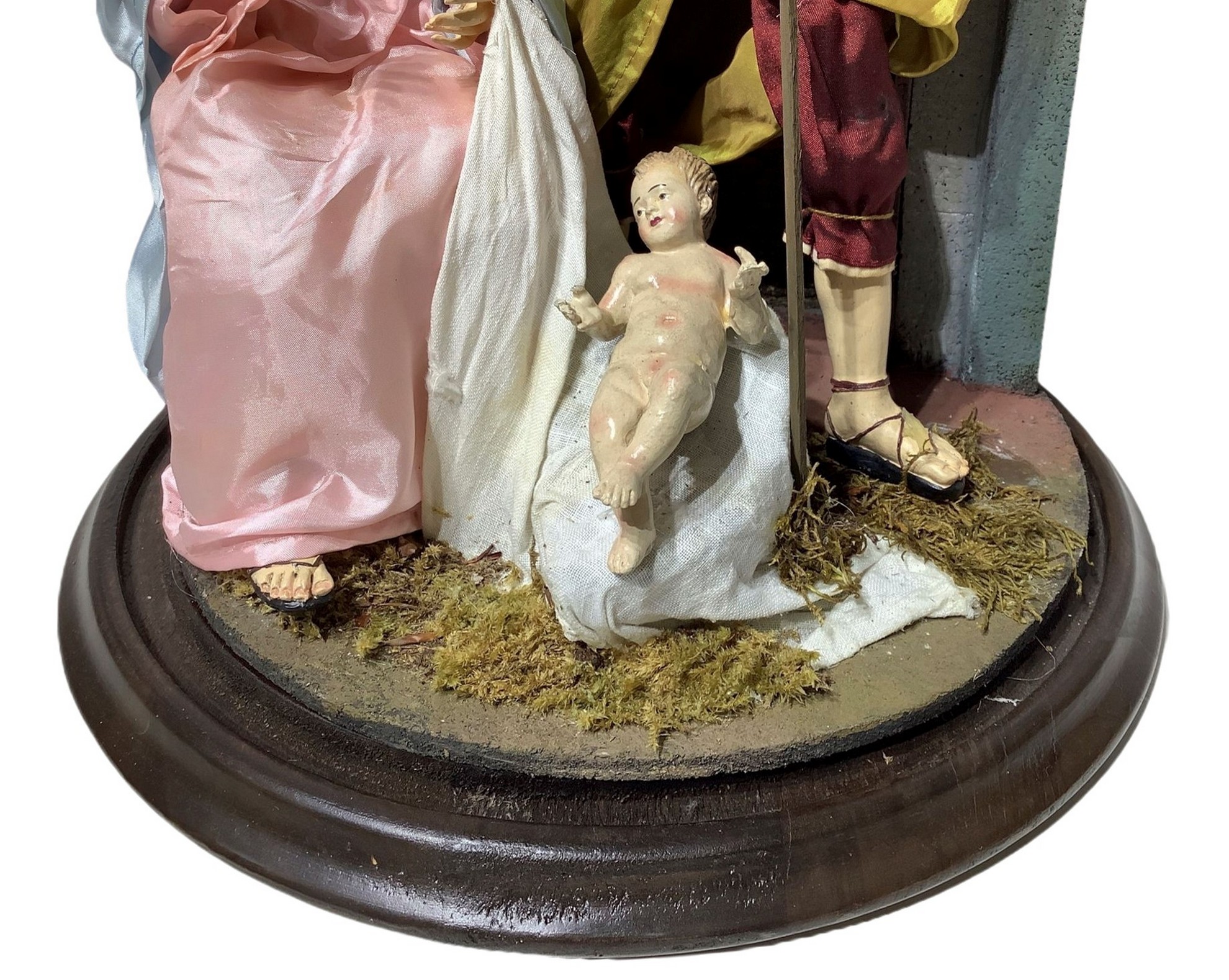 teca 64 cm, natività 60 cm Sacra famiglia in teca di vetro