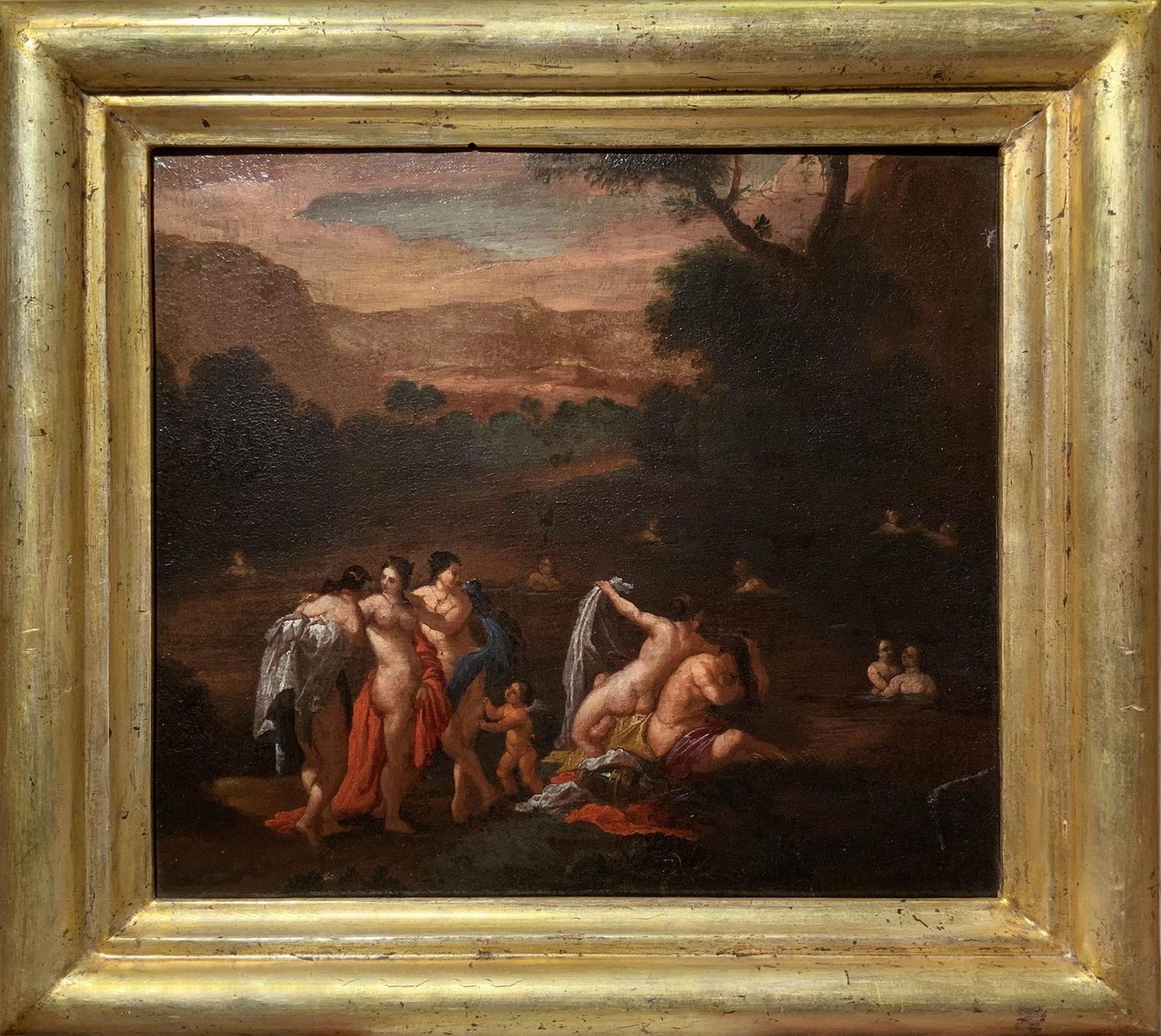 42x48 cm, in cornice 60x66 cm Diana e le sue ninfe al bagno Dipinto a olio su tela