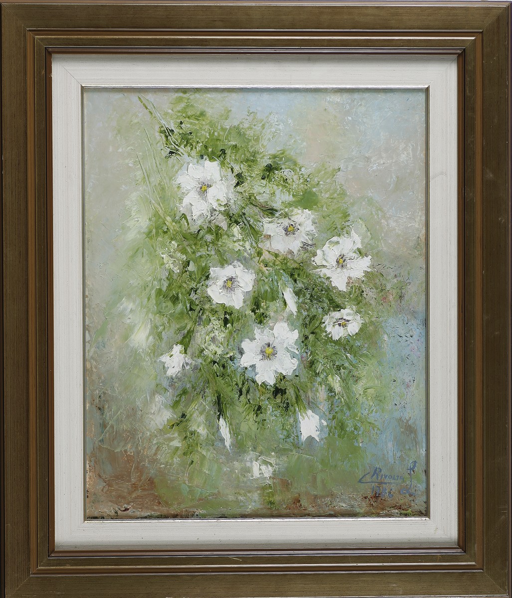ANONIMO Campanile. 1986. Olio su tela . Cm 40,00 x 50,00. Firma Rivolta e data in basso a destra. Al retro titolo, firma e data. Cornice presente