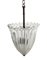 h 50 cm, d 30 cm Anni 40 Lampadario in vetro di murano Costolato con bordo superiore smerlato in oro, tre luci. Presente piccola filatura