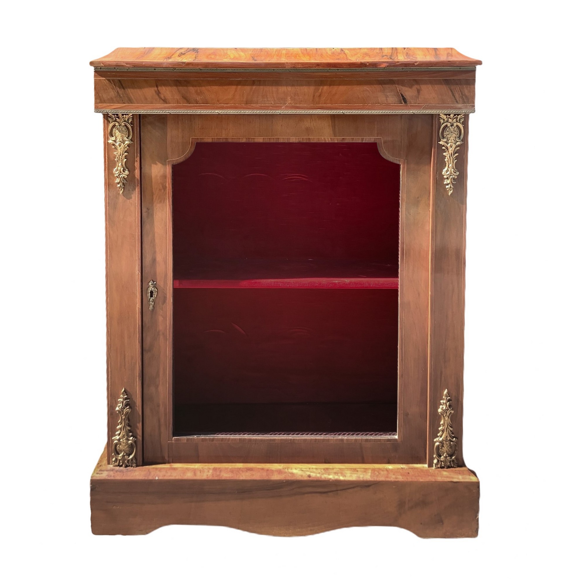 h 103 cm, 75x28 cm Fine XIX secolo Vetrina in noce con applicazioni di bronzi sul fronte Sportello centrale a vetri
