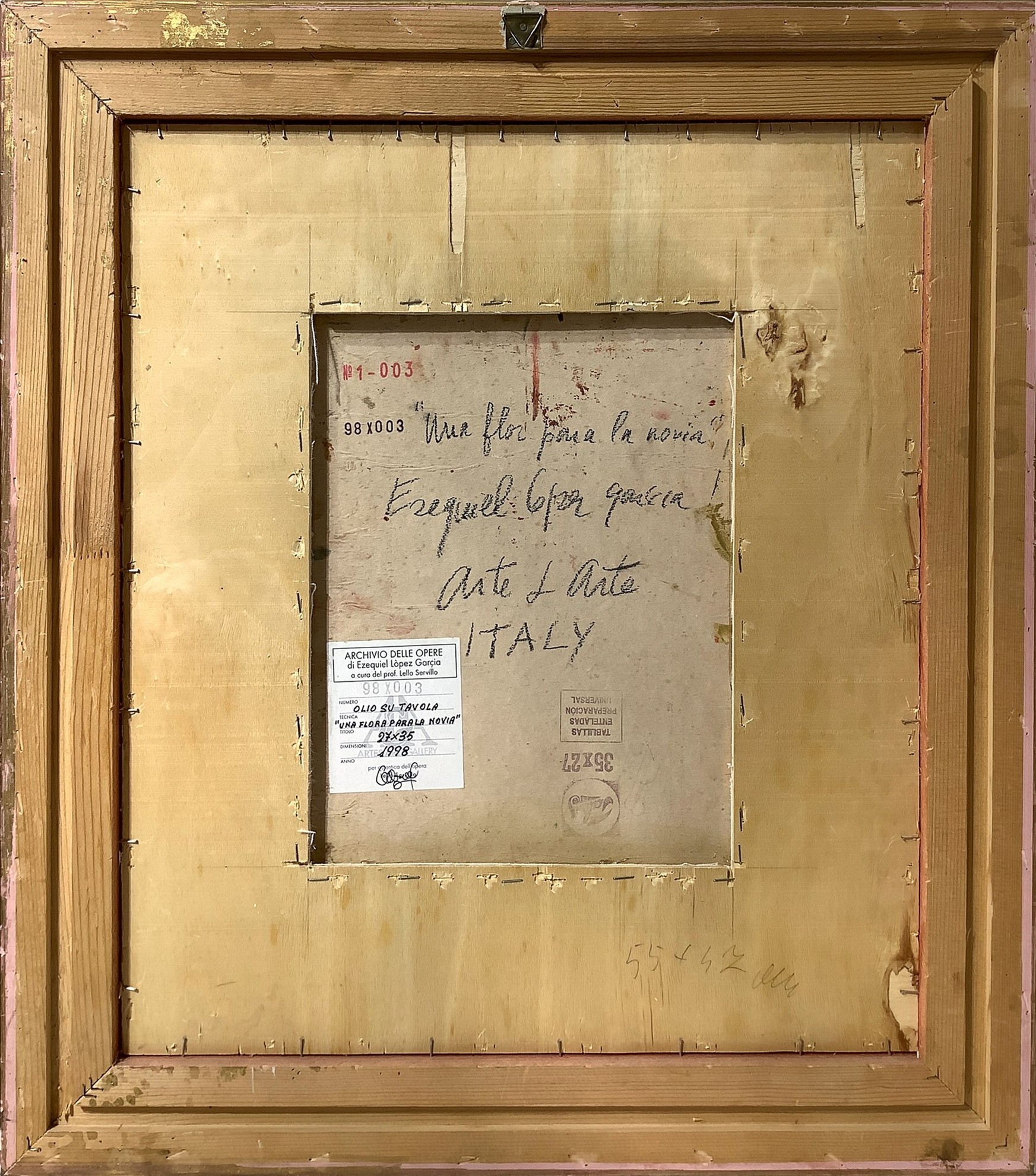 35x27 cm 1998 Una flora para la novia Dipinto a olio su tavola Autentica su fotografia