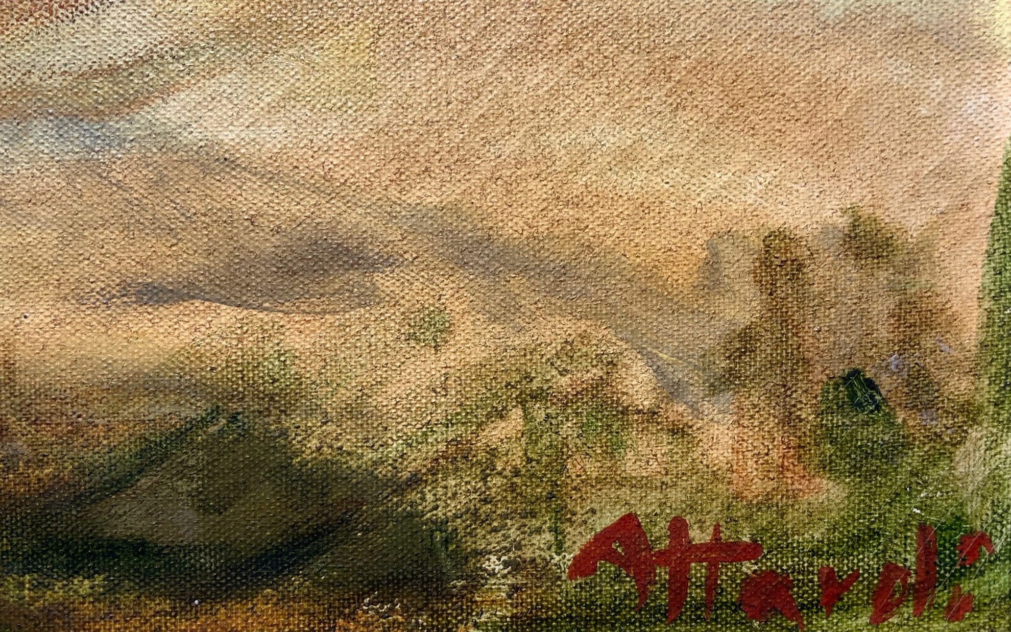 48x92 cm Paesaggio con barche Dipinto a olio su tela Firmato in basso a destra. Firmato e datato 957 su retro.