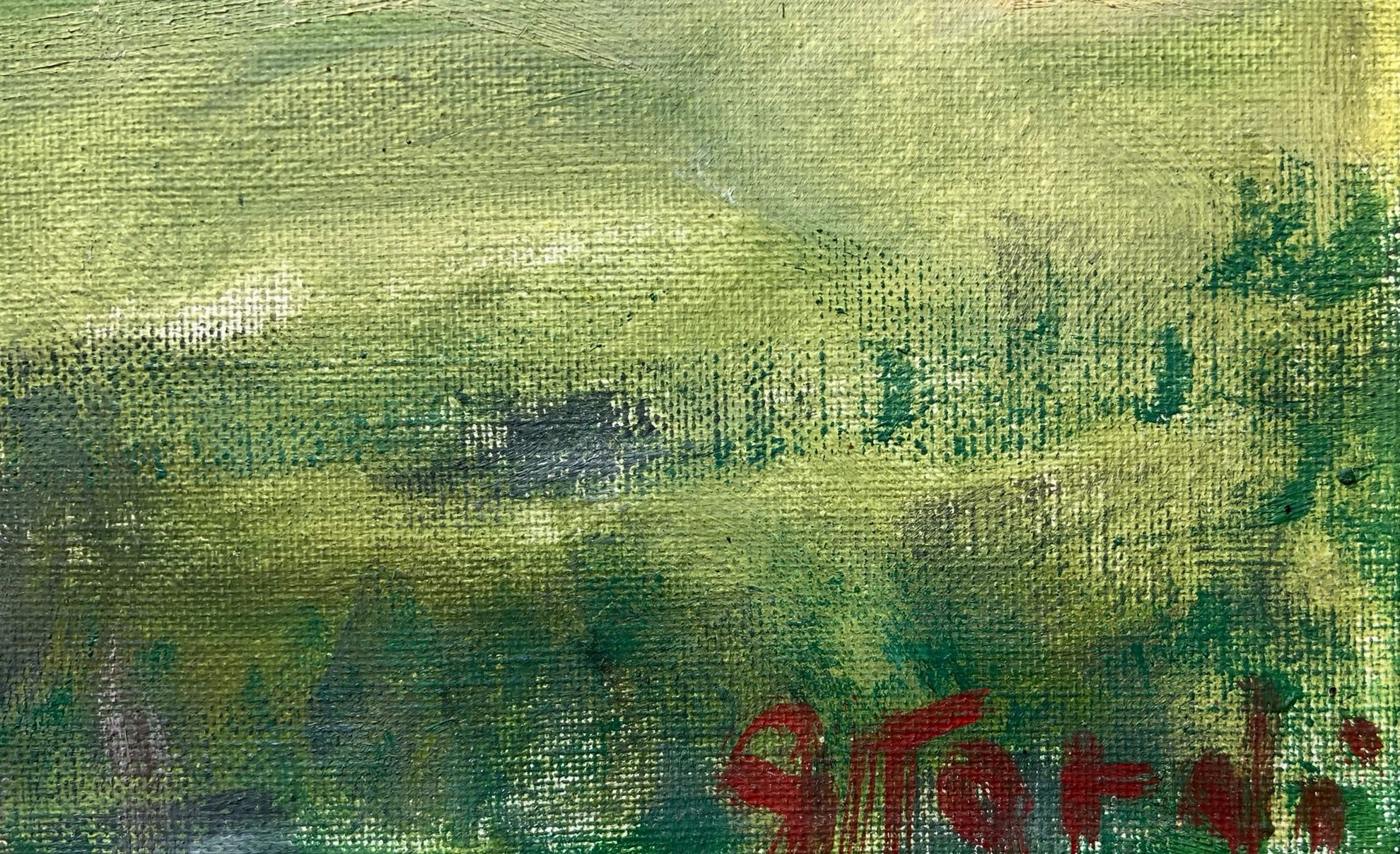 48x92 cm Paesaggio campestre Dipinto a olio su tela Firmato in basso a destra. Autentica dell’artista su foto.
