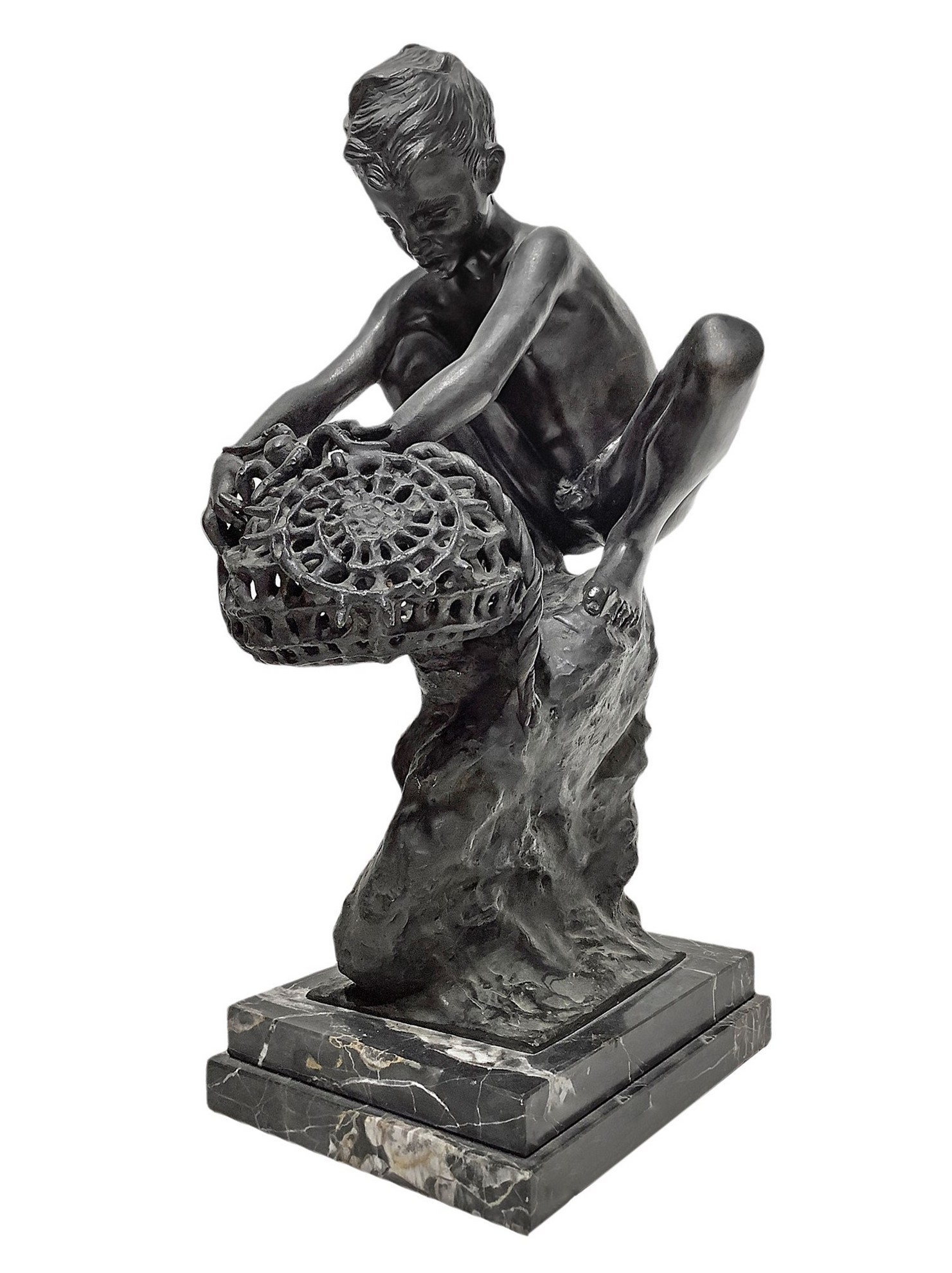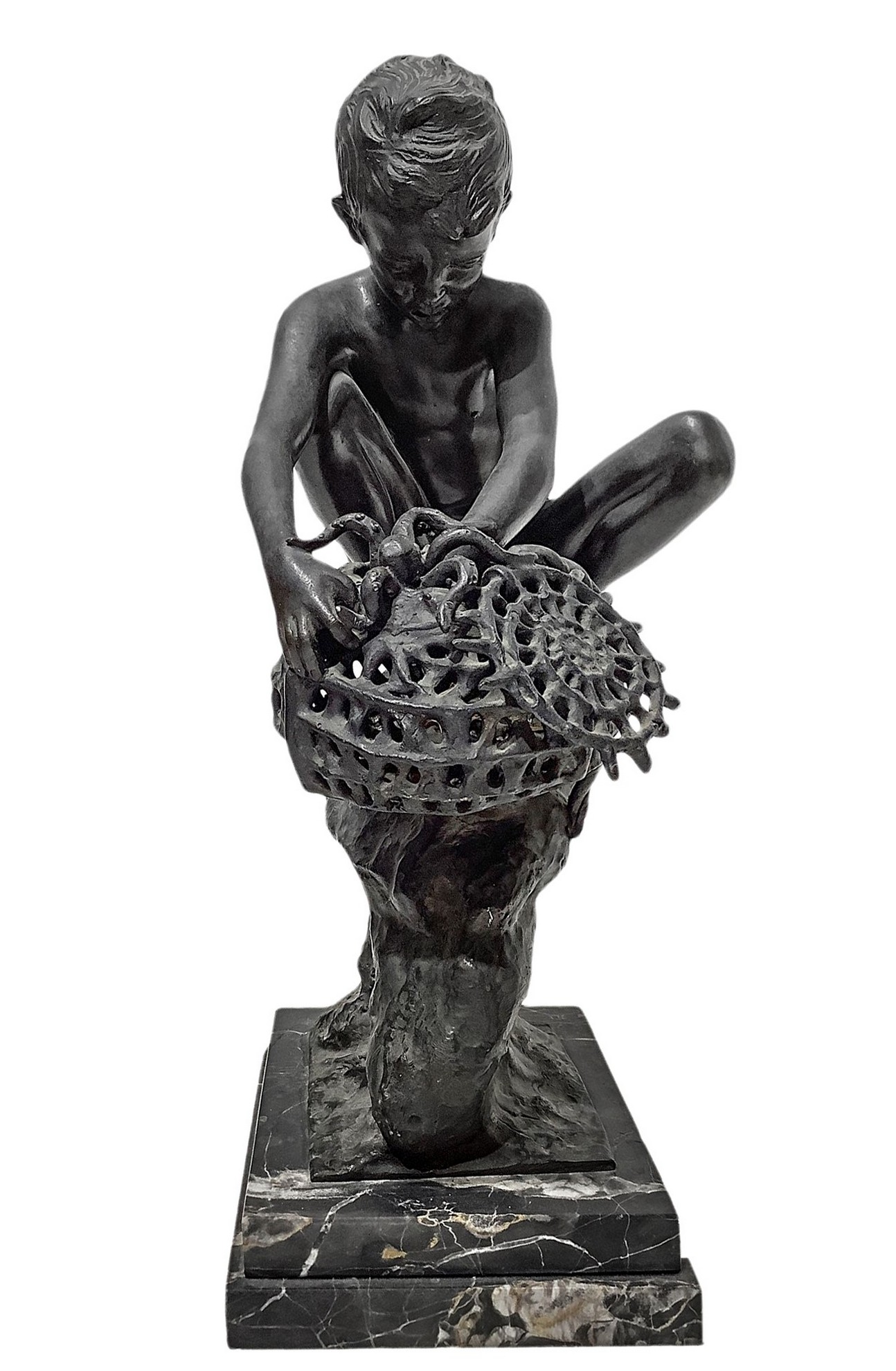 H cm 41 Bronzo raffigurante pescatore XX secolo Con base in marmo