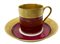 H tazzine con piattino 6,5 cm. Vassoio 34x16 cmServizietto da caffè tete a tete Servizio in porcellana Con decorazione in oro e rosso, composto da due tazzine con piattini e vassoio rettangolare.