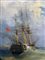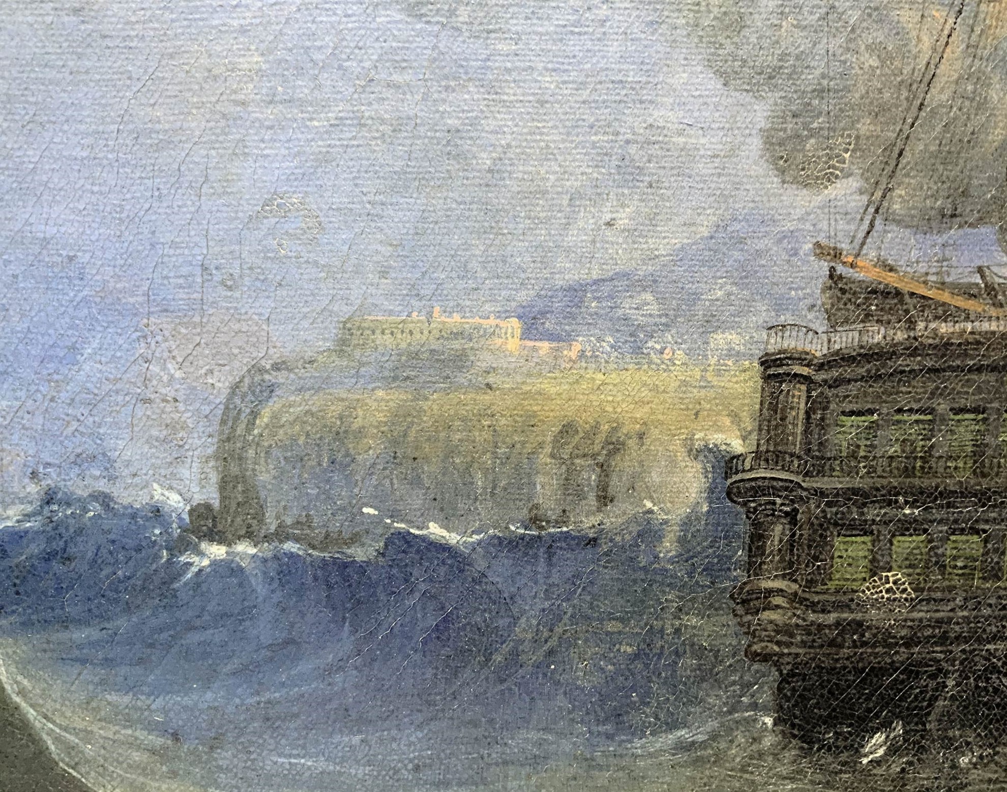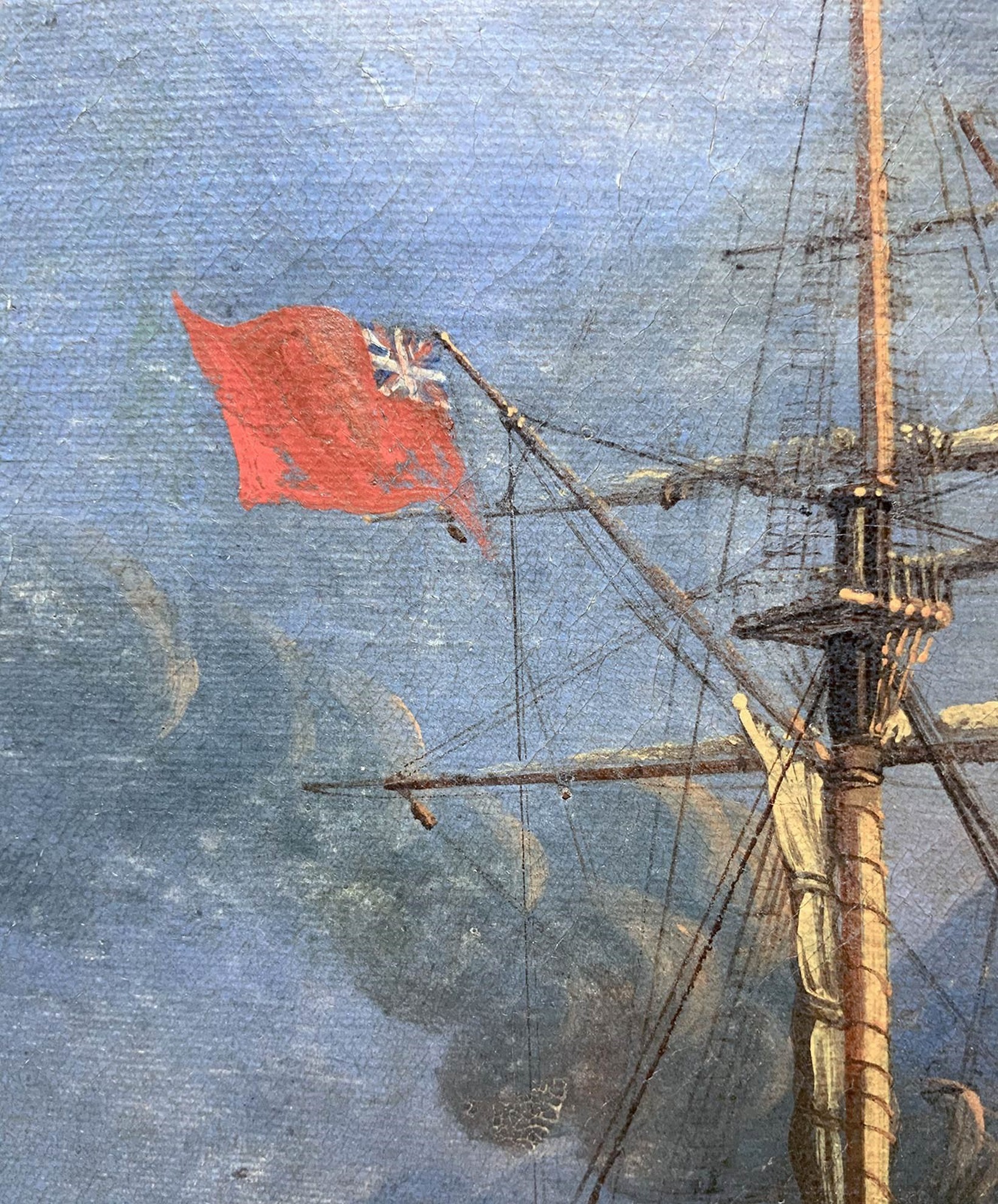 H 57x78 cm Fine XVIII secolo Veliero a tre alberi Dipinto a olio su tela