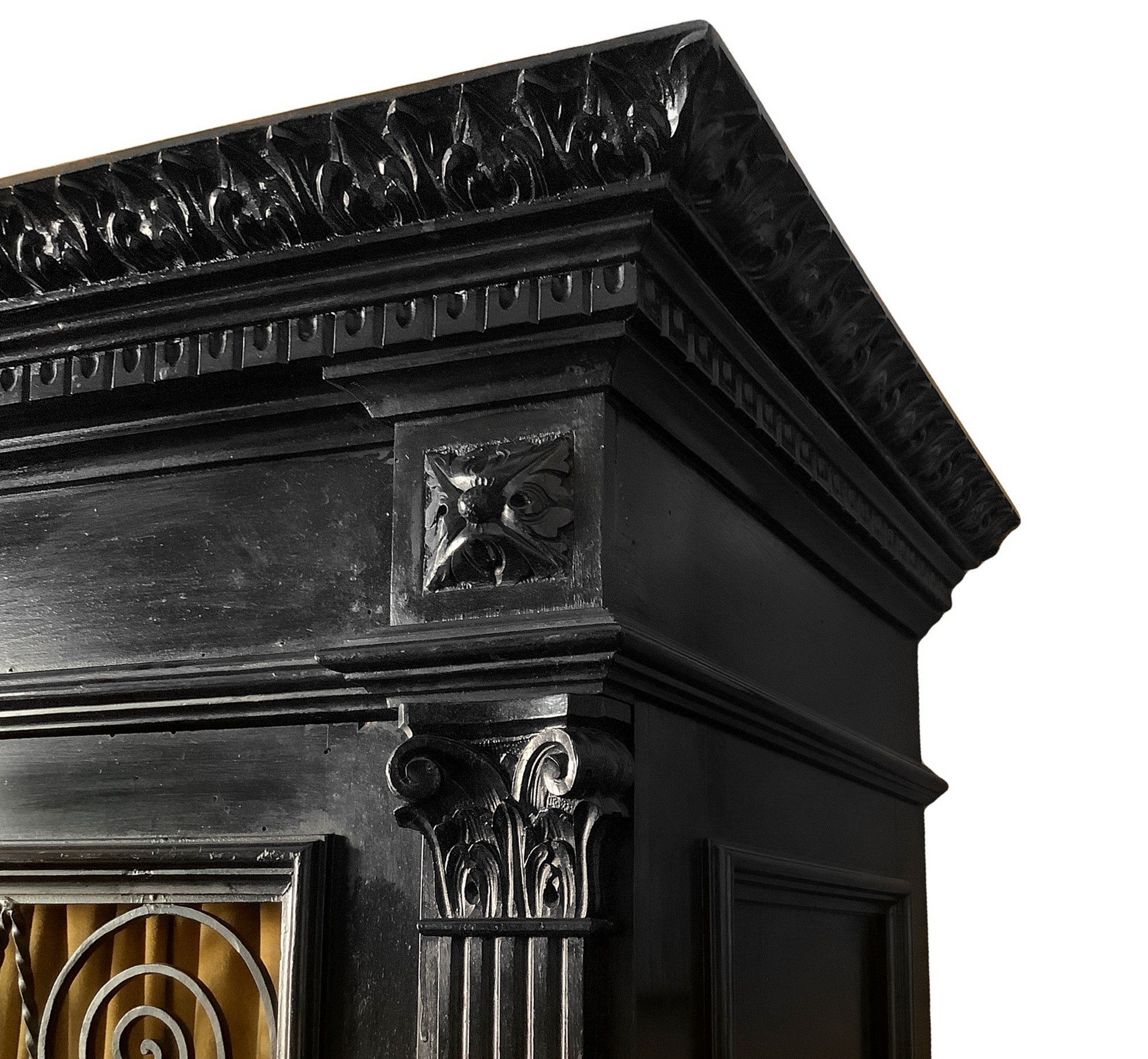 h 110 cm, 120x50 cm XIX secolo Mobile etagere Marmo al piano, sportello centrale con intarsi a fiori