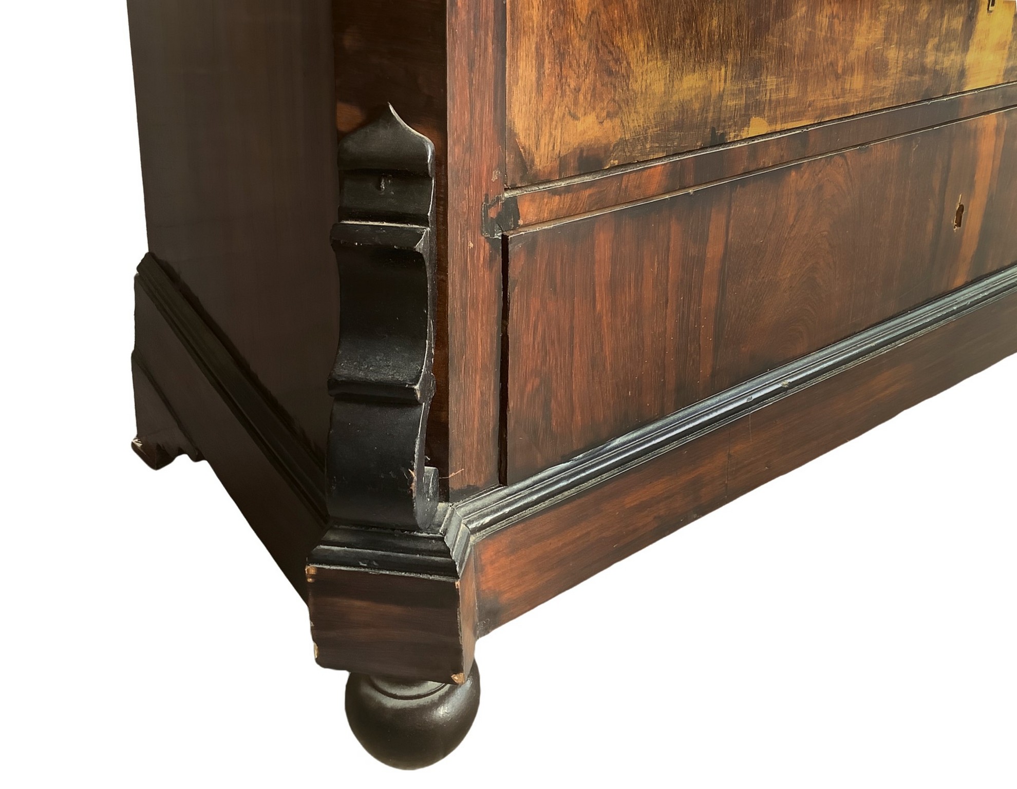 Chiffonier in legno di palissandro, corpo inferiore composto da cinque cassetti, Mid 19° secolo