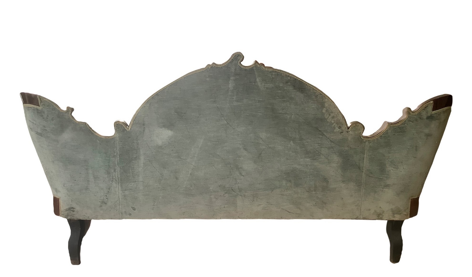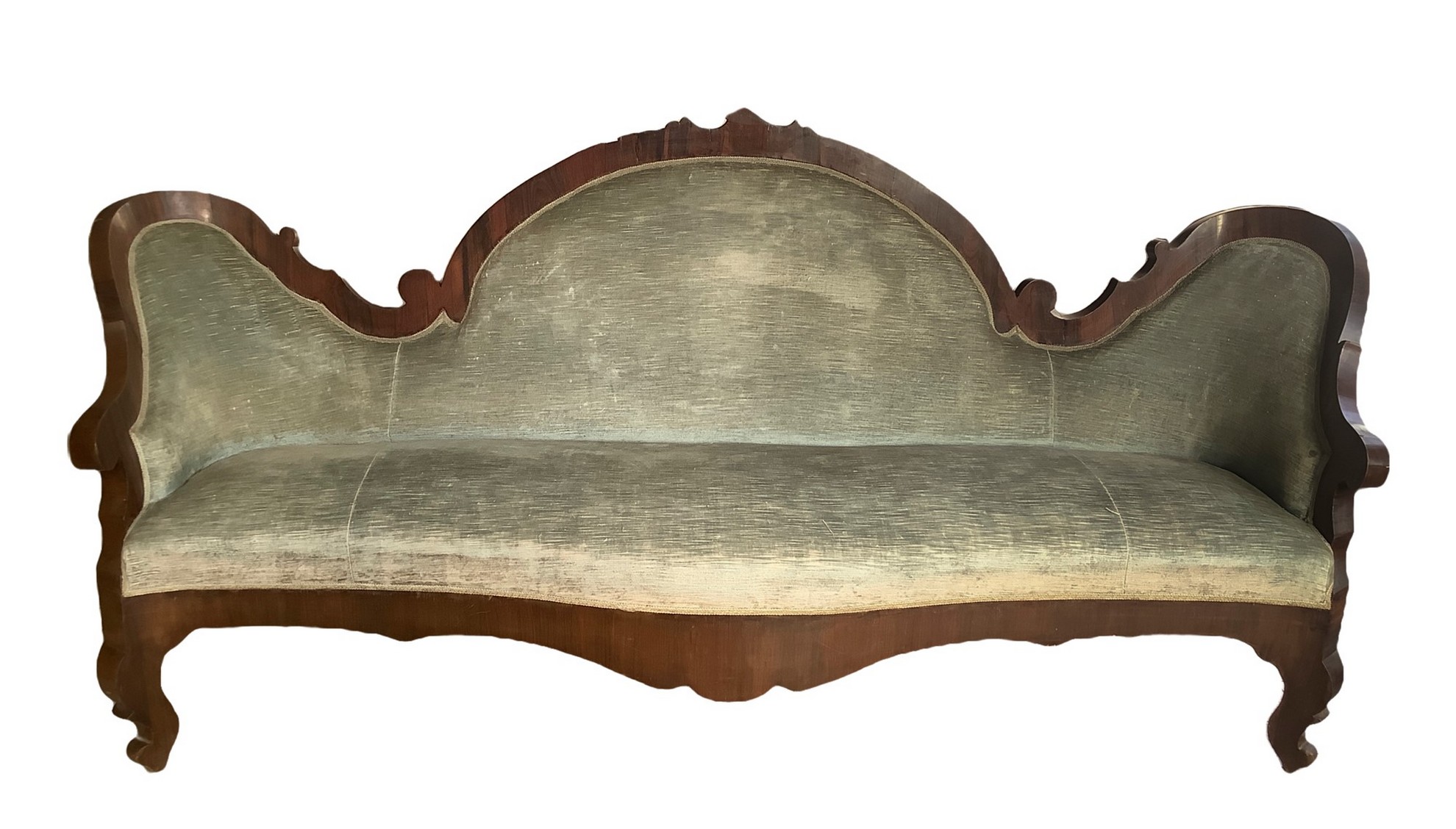 h 112 cm, l 2,20 m, p 55 Metà XIX secolo Divano Luigi Filippo in legno di mogano, tre posti Spalliera modulata e piedi a cabriolet. Provenienza Sicilia. Ottime condizioni.