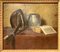 40x50 cm, in cornice 57x67 cm 1931 Doppio dipinto: natura morta con mandolino, libro e brocca + composizione astratta Dipinto a olio su tela Firmata e datata in basso a destra