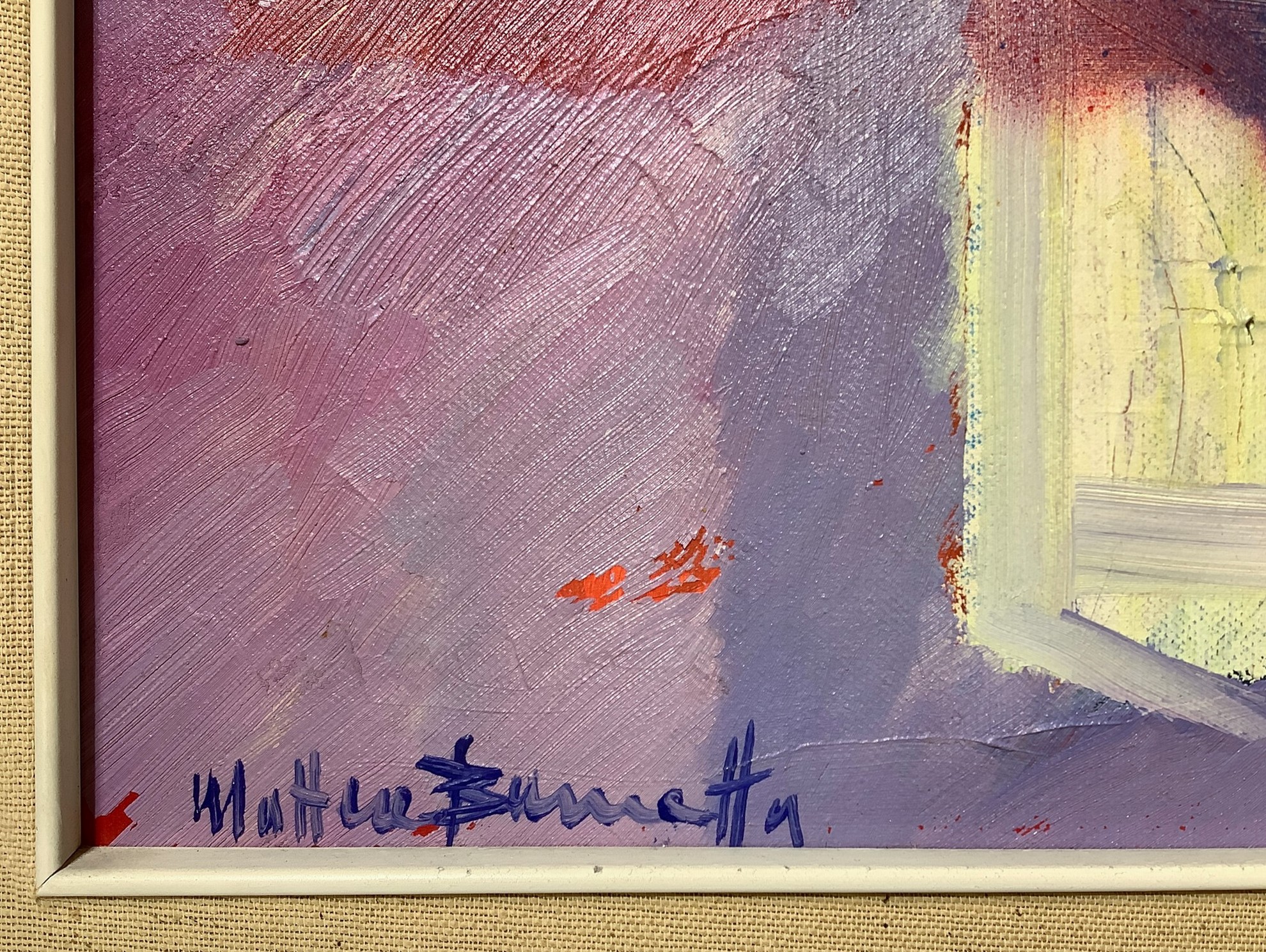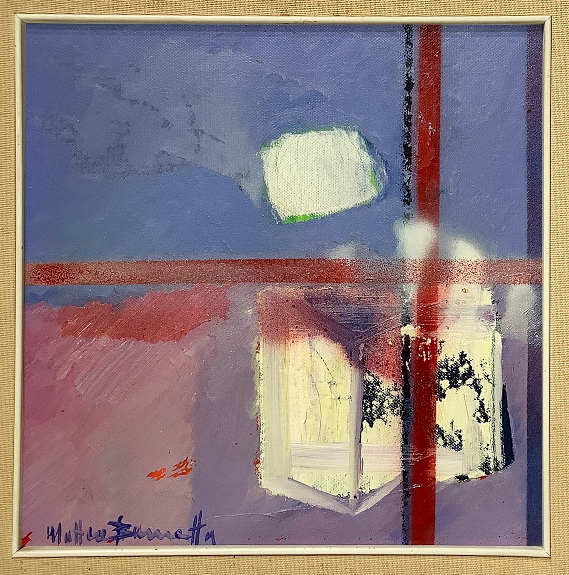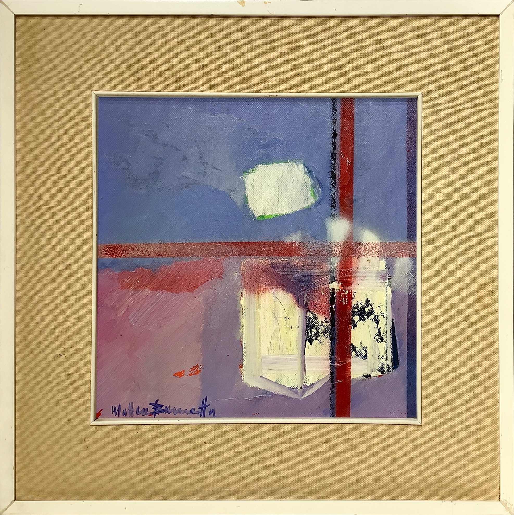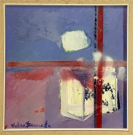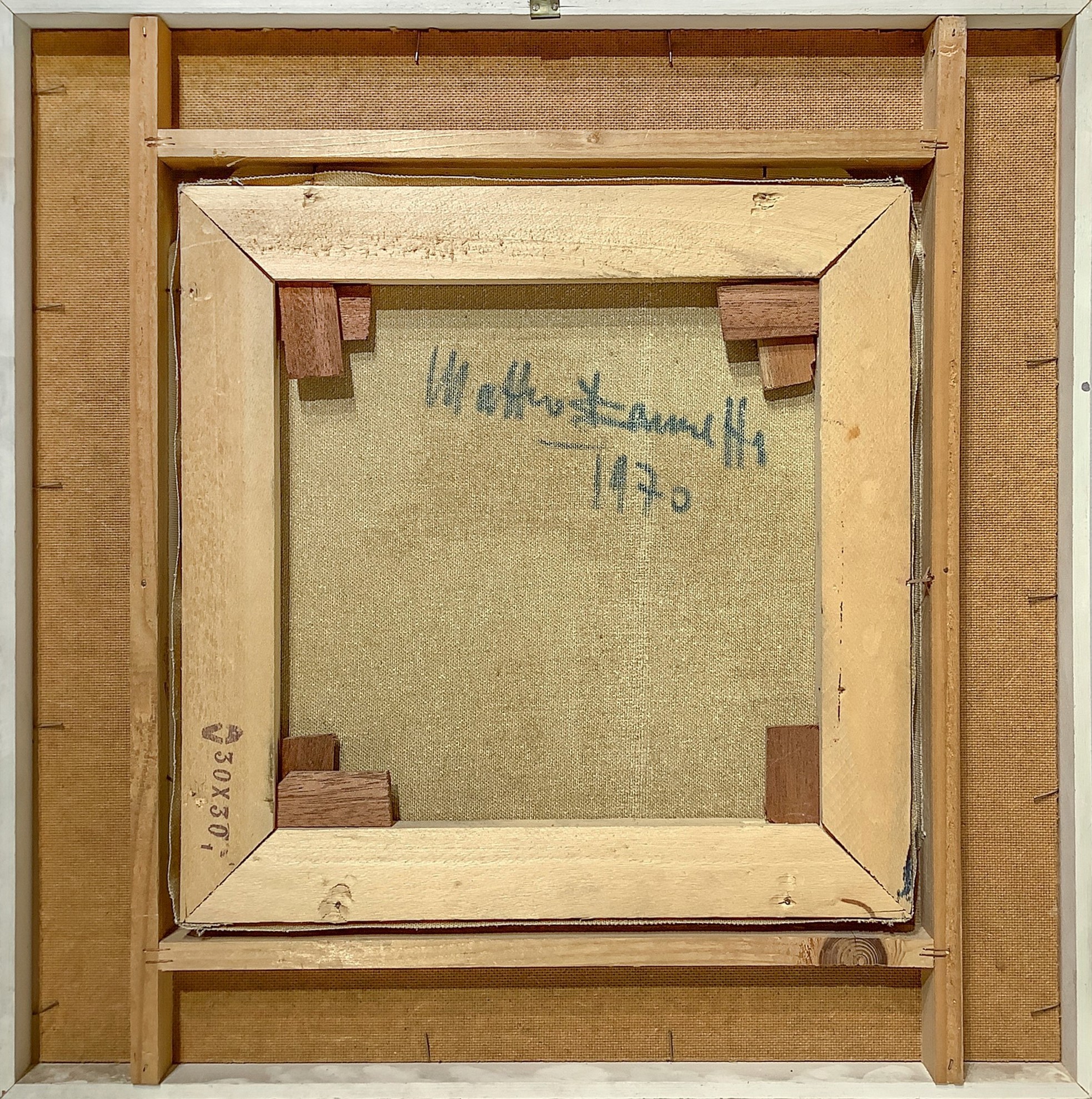 30x30 cm, in cornice 45x45 cm 1970 Composizione astratta Dipinto a olio su tela Frmato in basso a sinistra Matteo Barretta e sul retro. Datato sul retro 1970.