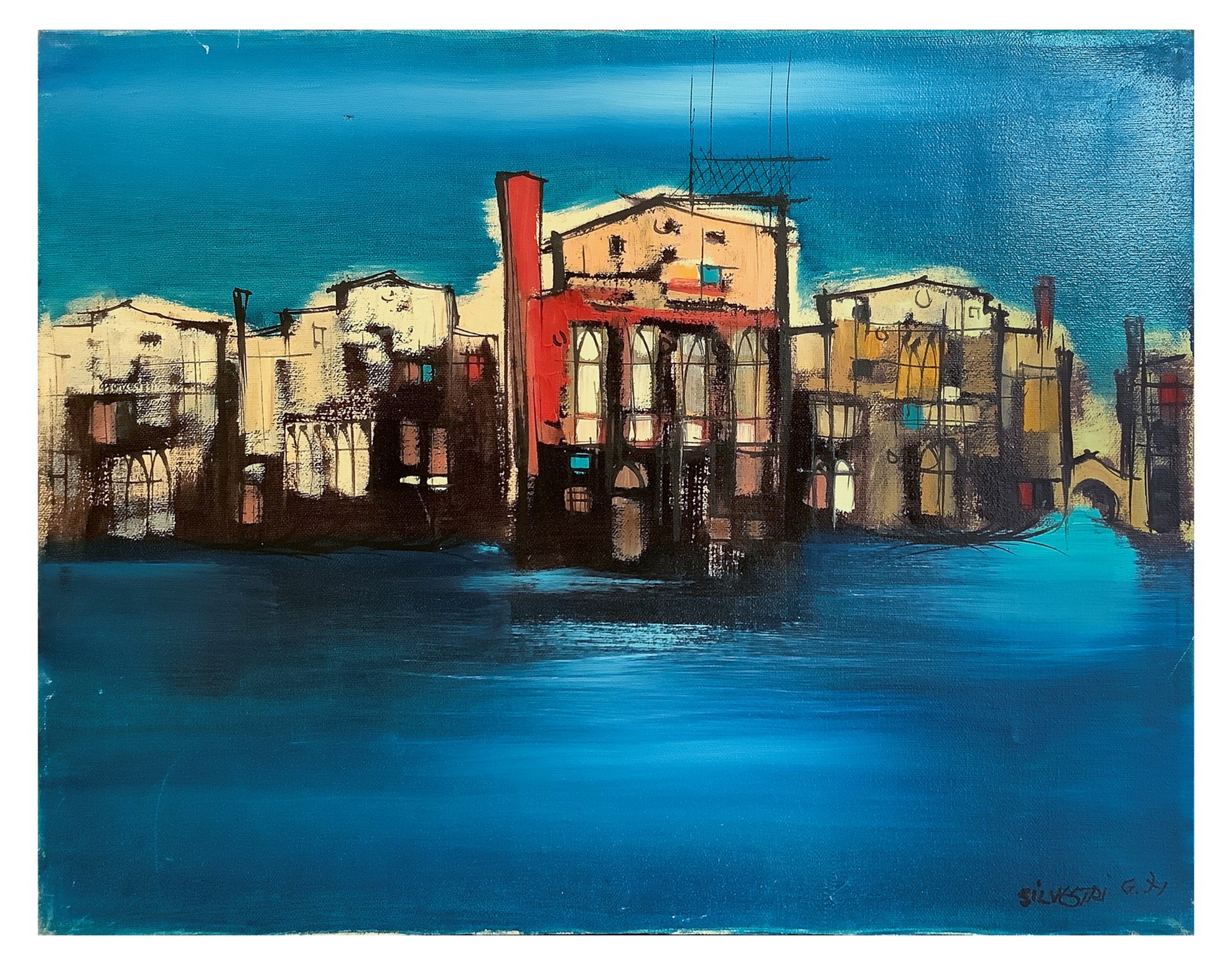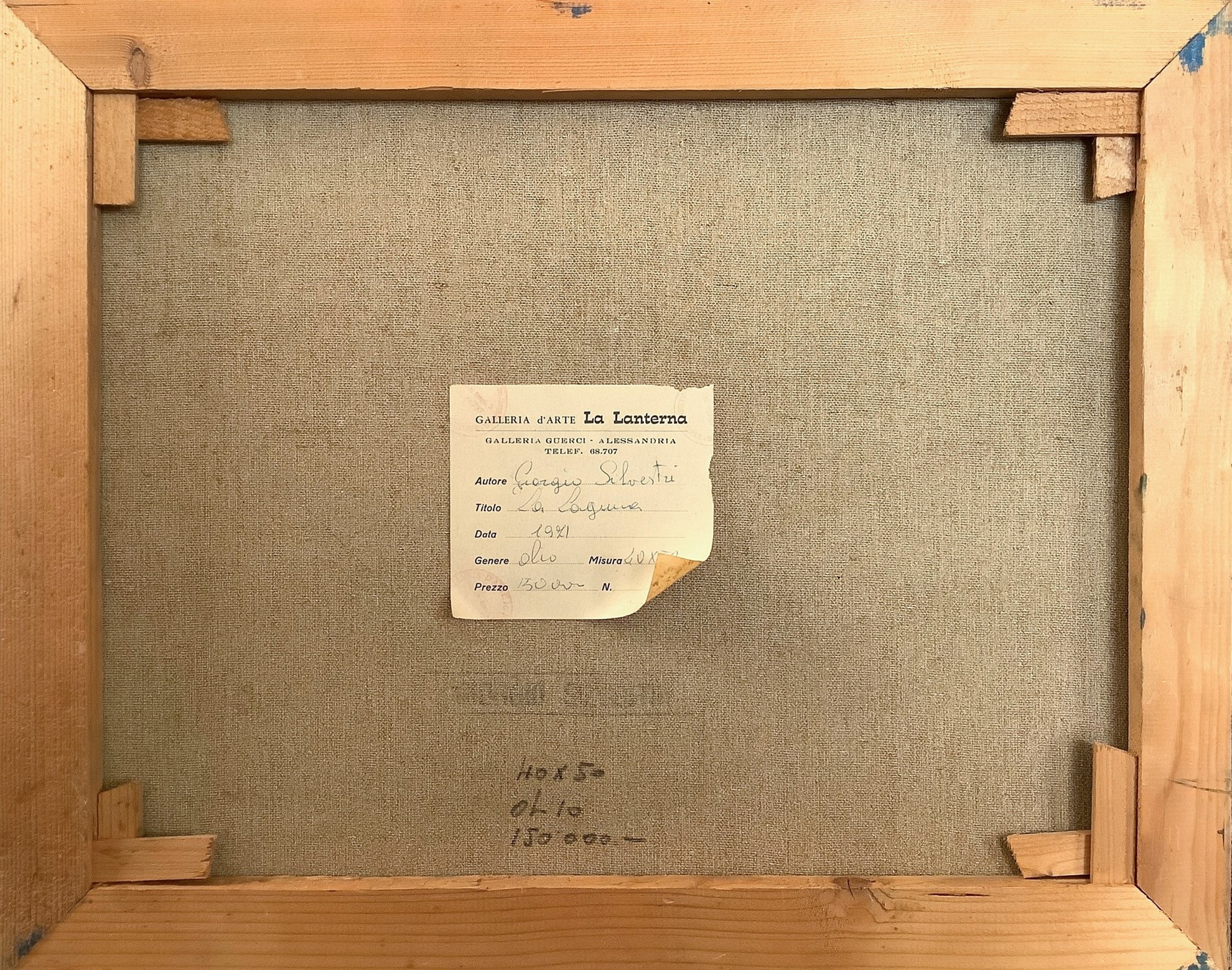 Cm 40x50 Laguna di Venezia Dipinto ad olio su tela Firmato in basso a destra e sul retro. Datato 1971. Provenienza "La Lanterna", Galleria Guerci Alessandria.