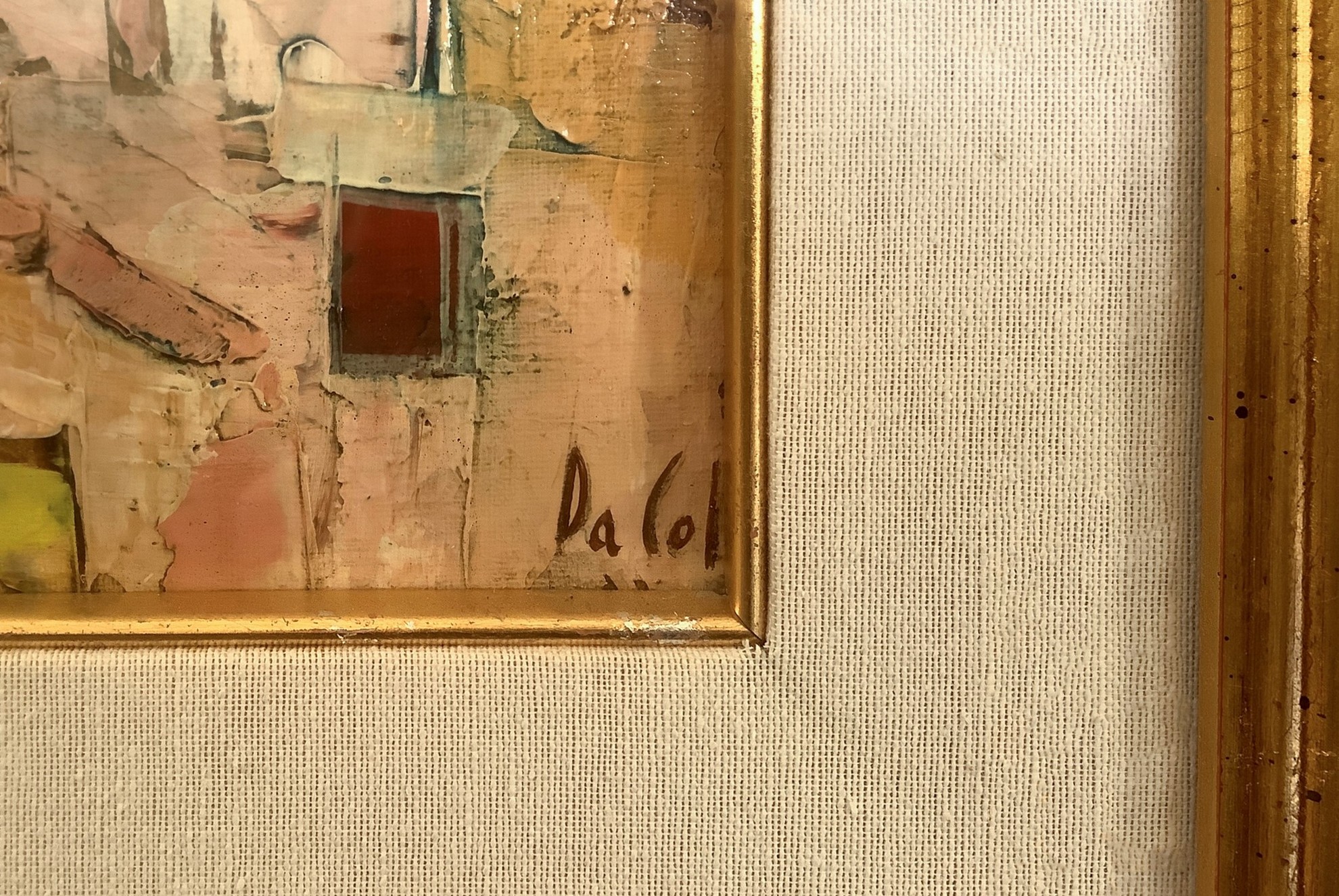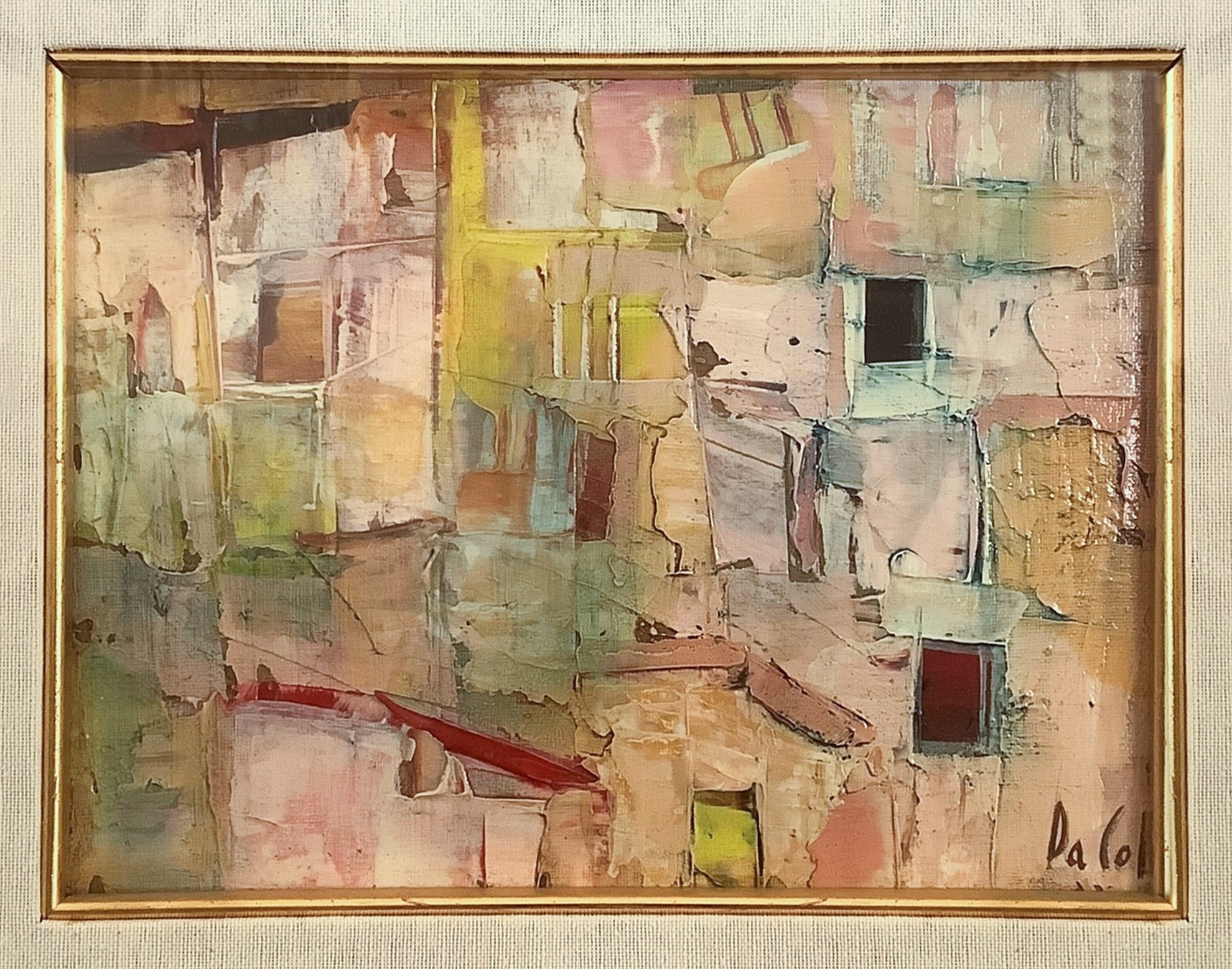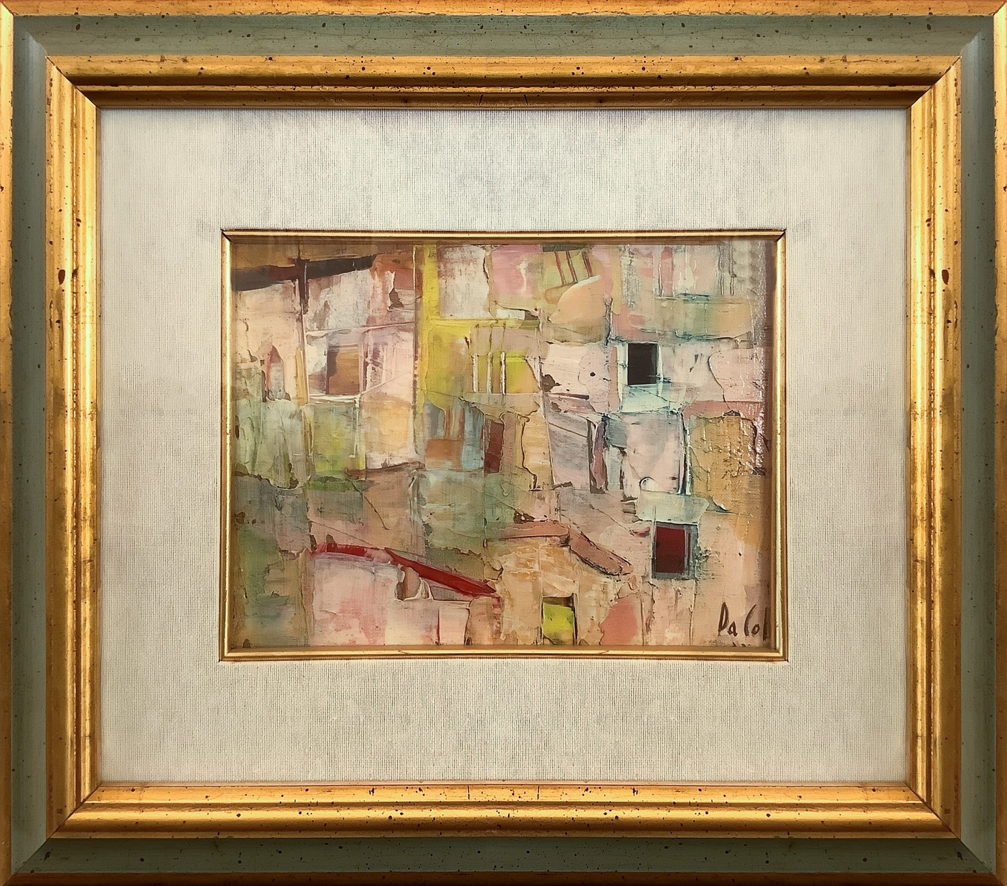 Cm 18x24 1972 Case Dipinto ad olio su tela Firmato in basso a destra Da Col 1972.