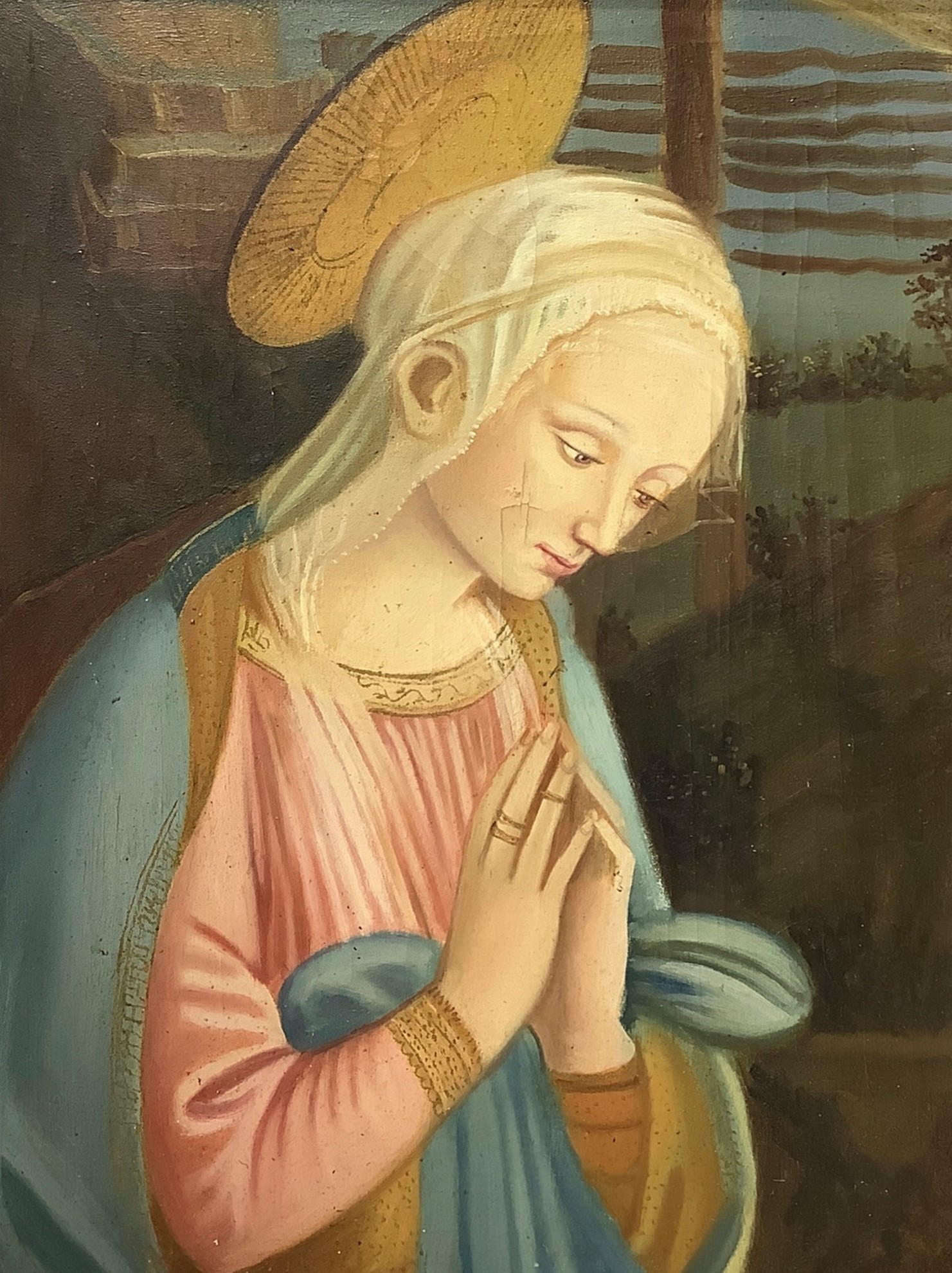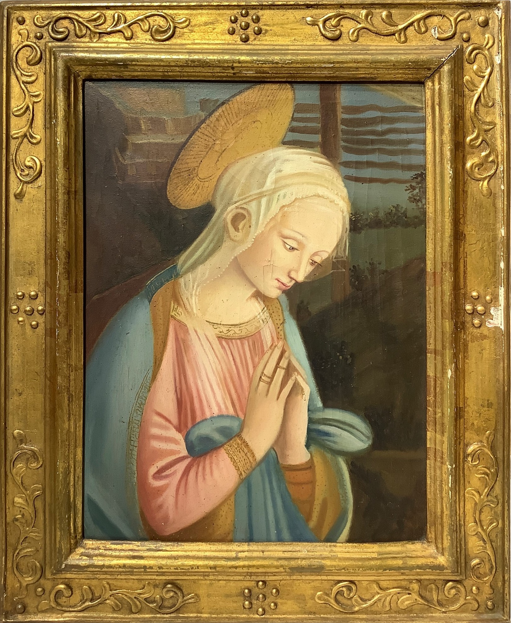 40x30 cm, in cornice 52x42 cm XIX secolo Madonna orante Dipinto a olio su tela