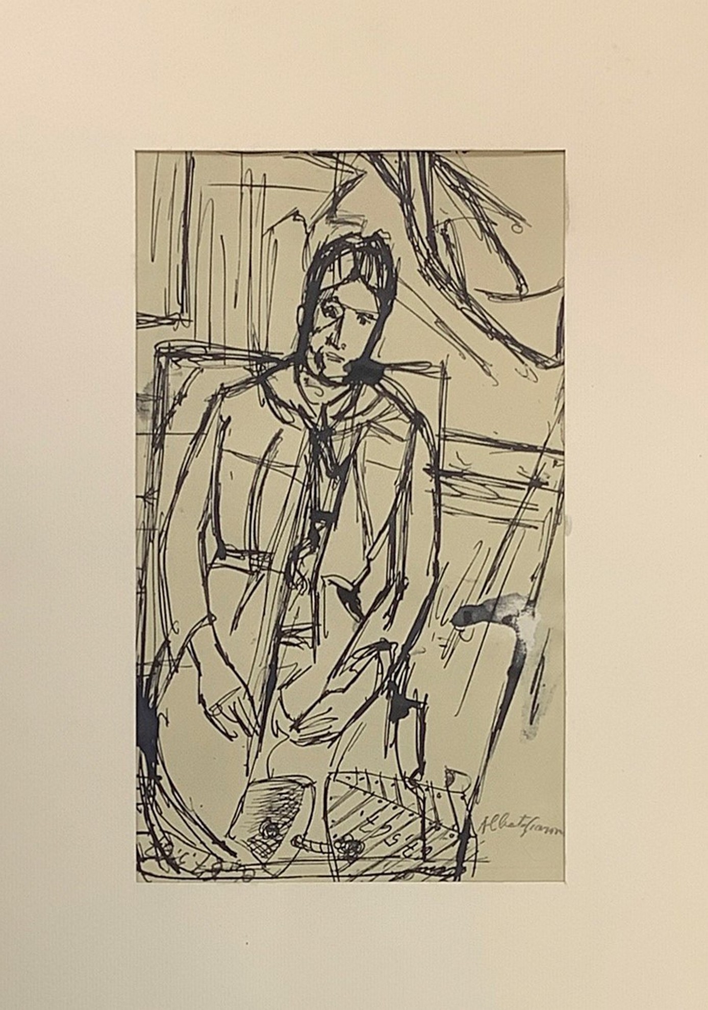 mm 215x130. 1934 Copia del « Ritratto di Madame Cézanne » di Cézanne Copia da disegno a inchiostro stilografico Originale proprietà Galleria Claude  Bernard, Parigi.