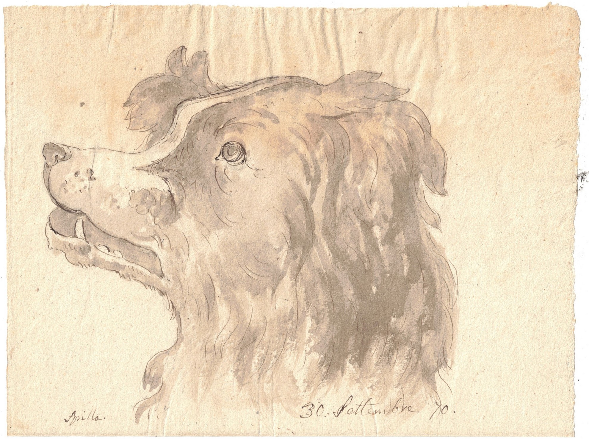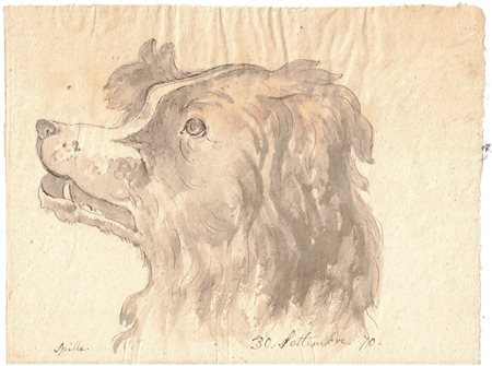 15,5x20,5 cm Fine XIX secolo Testa di cane Disegno a china acquarellata con inchiostro bruno