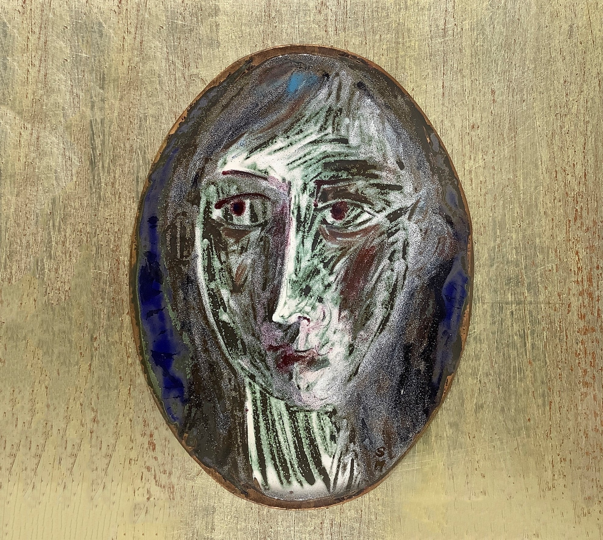 52x46 cm Volto di donna Smalto policromo su rame al terzo fuoco Firmato Milluzzo e sul retro etichetta