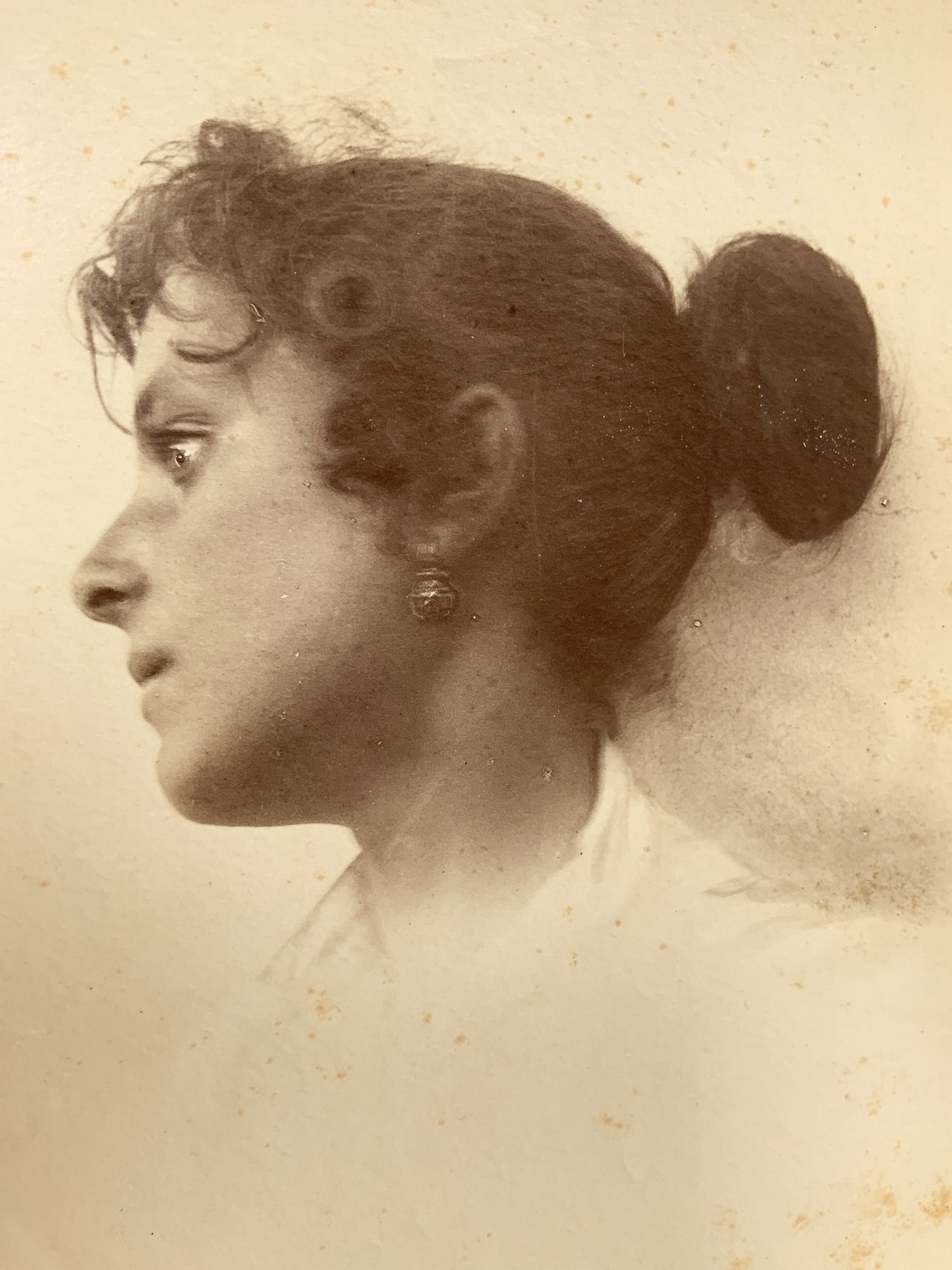 Cm 17x22 Volto di ragazza di profilo. Foto all’albumina Numerata sul retro 2516.