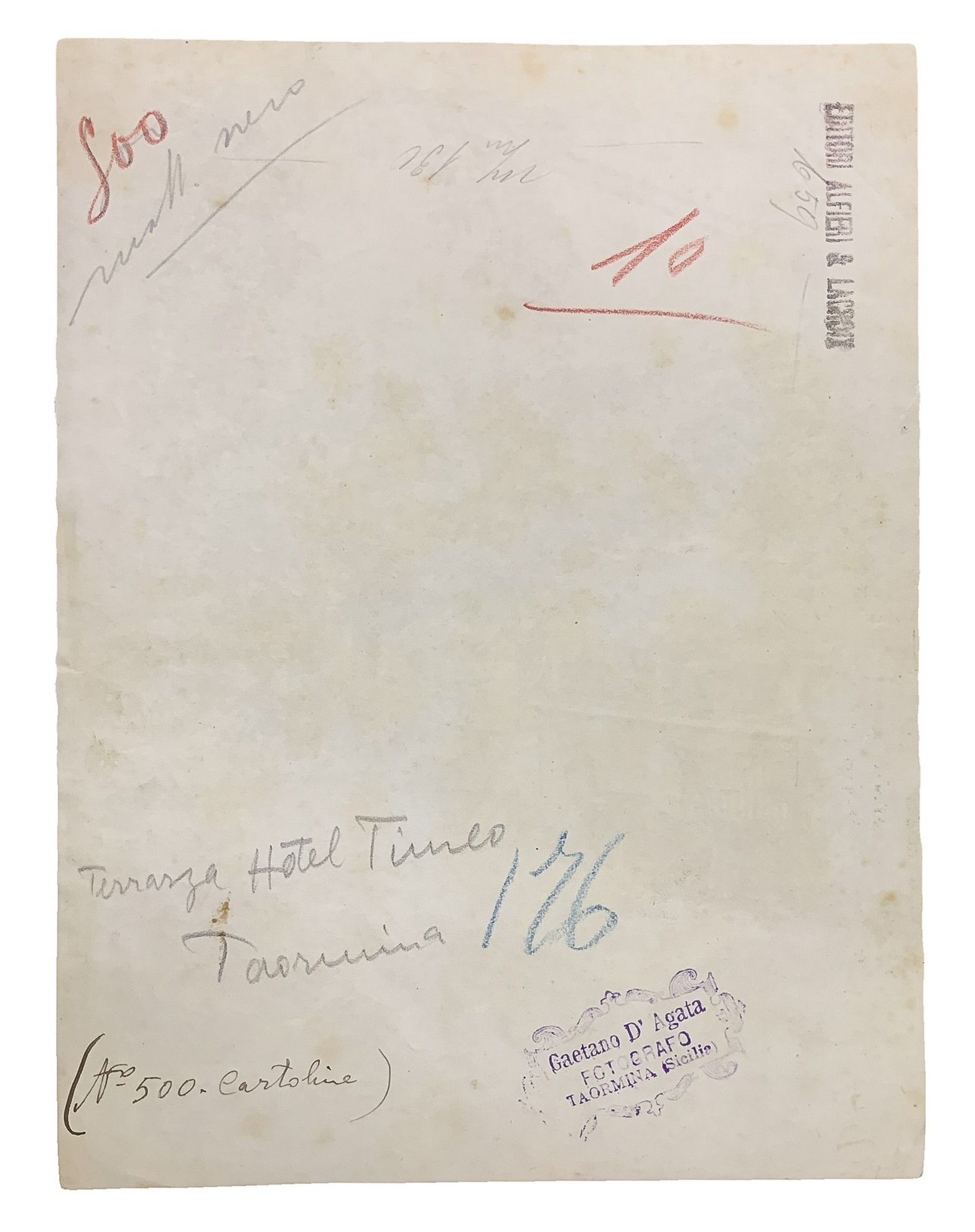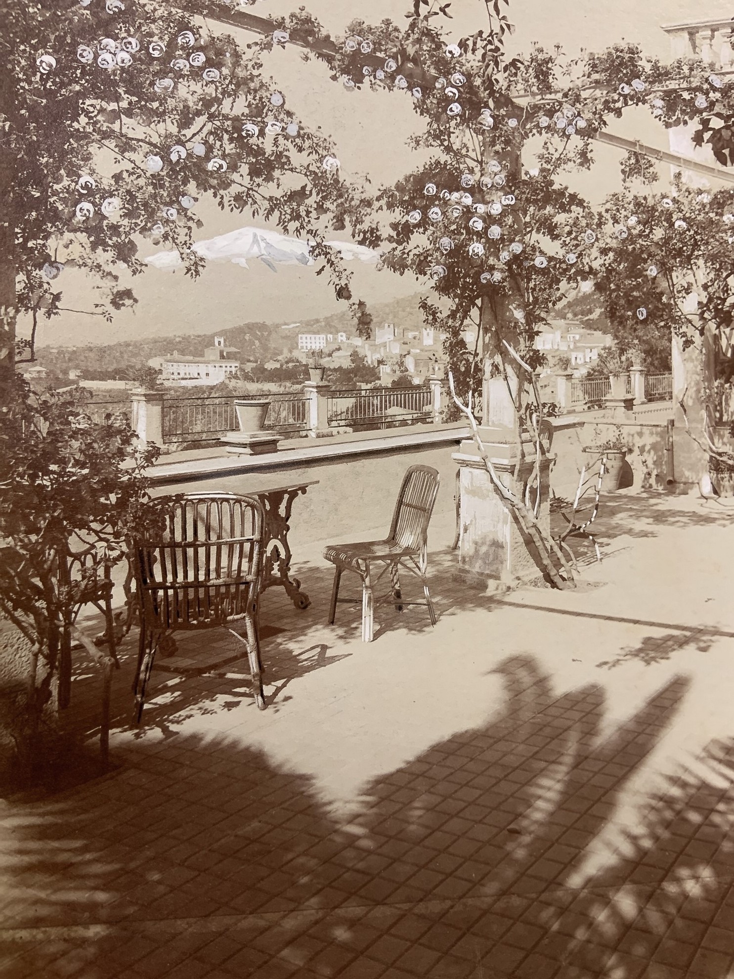 22x17 cmVista dell’Etna dal terrazzo dell’Hotel Timeo di Taormina Foto all’albumina Timbrata sul retro. Numerata 166.