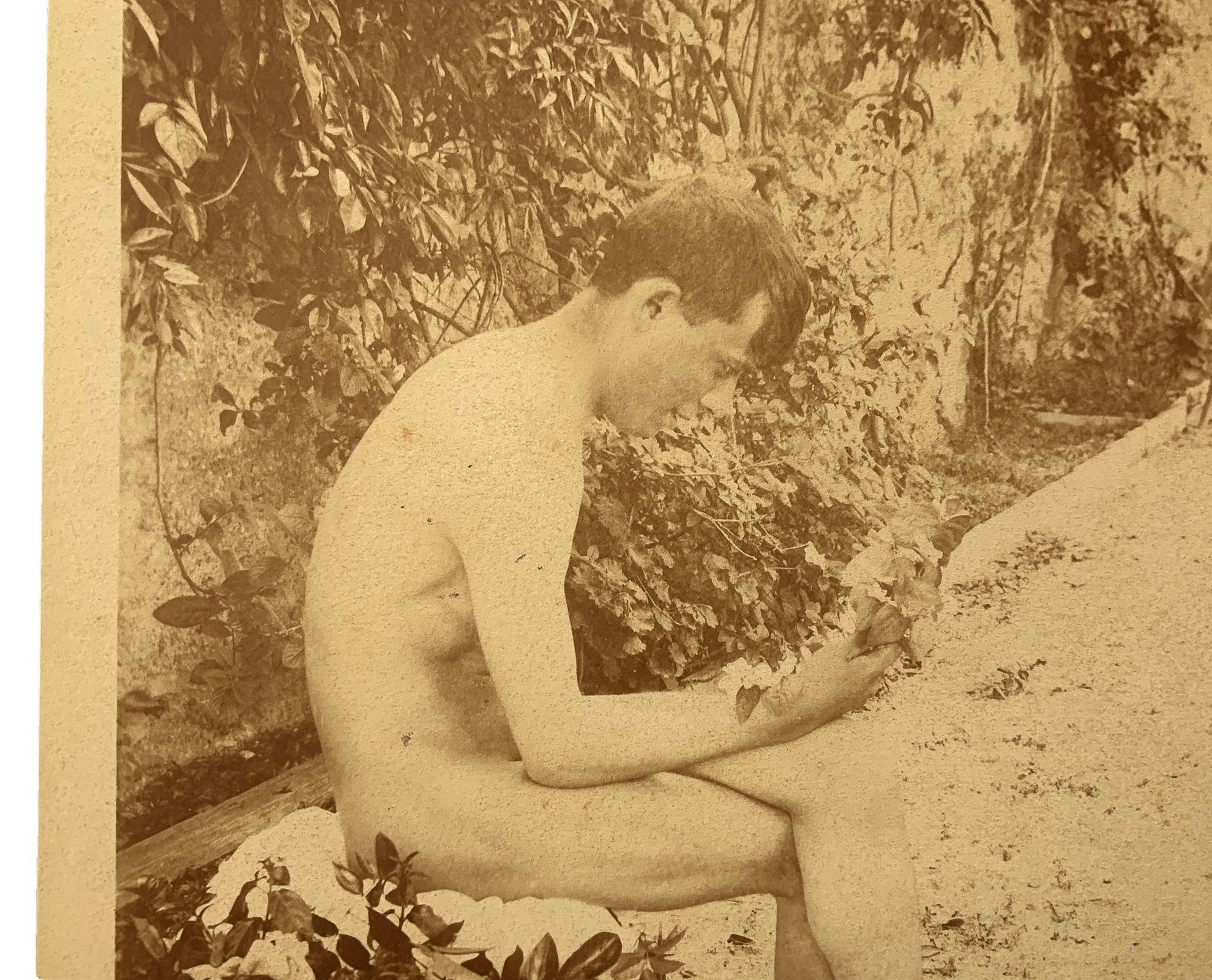 23,7x17 cmNudo di ragazzo seduto con fiori alla mano Stampa su carta albuminata