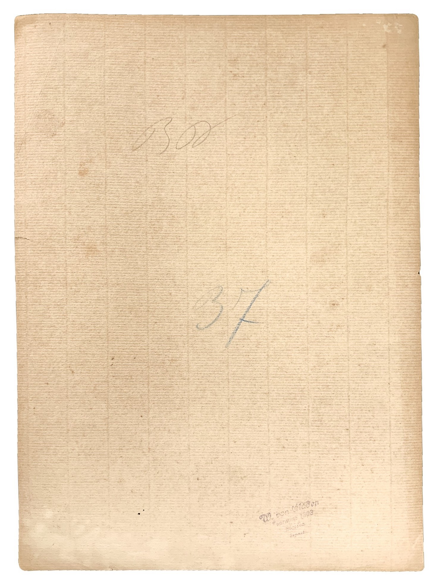 Firmata in alto a destra. Numerata “37” e timbrata al retro. Macchie di foxing al verso.