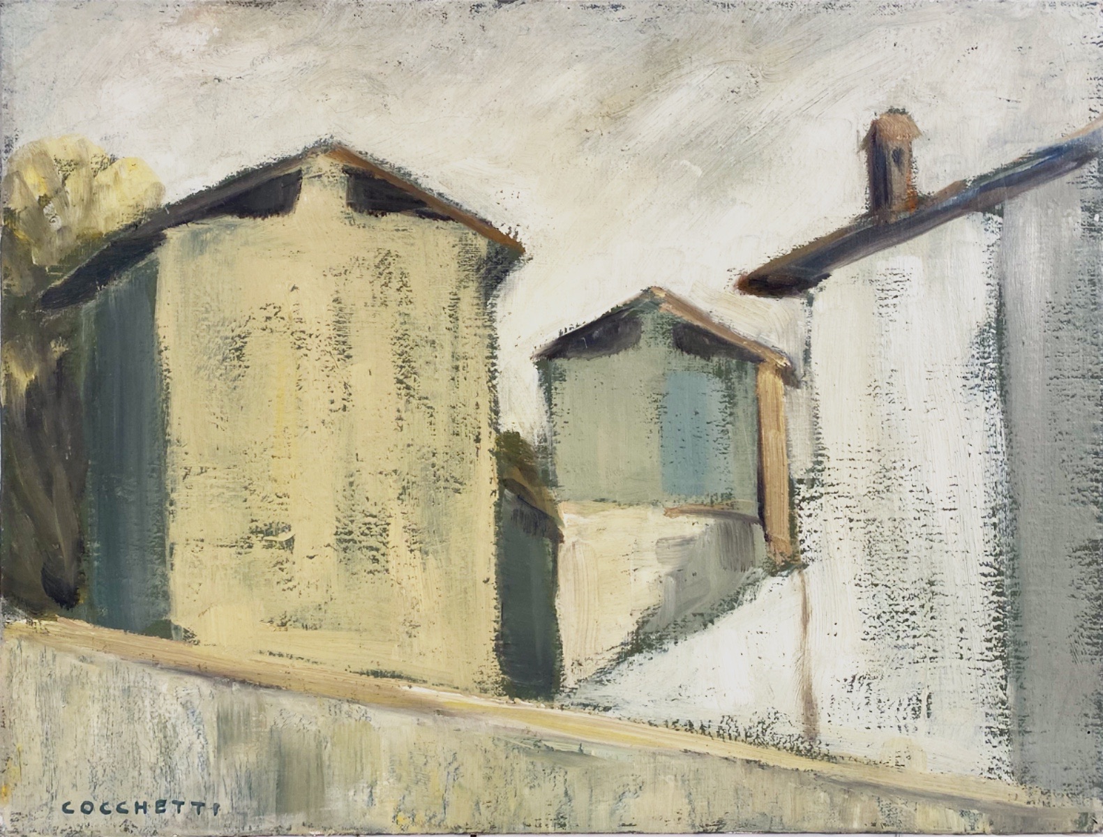 COCCHETTI CAMILLO Milano (Mi) 1922 Periferia 1970 Olio su tela 46,00x61,00...