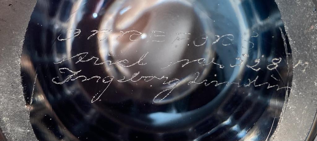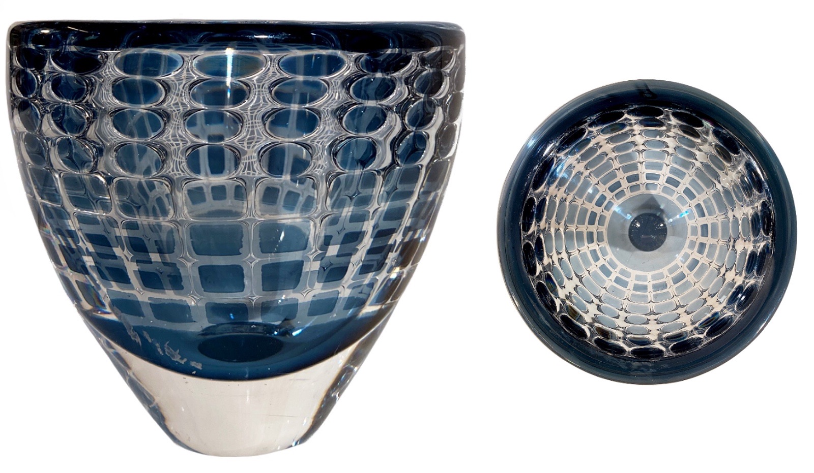 Blu chiaro. Firmato "ORREFORS Ariel No. 528 G Ingeborg Lundin" sotto la base.