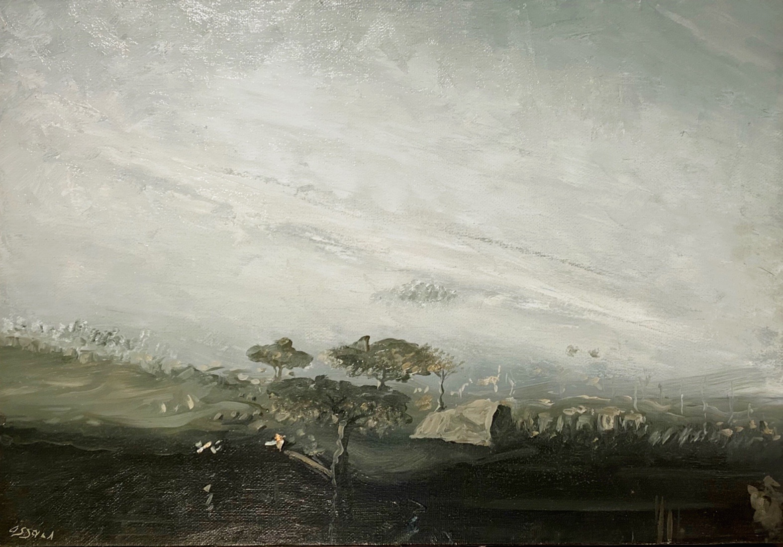 OSSOLA GIANCARLO Milano (Mi) 1935 Crepuscolo 2001 Olio su tela 55,50x80,00...