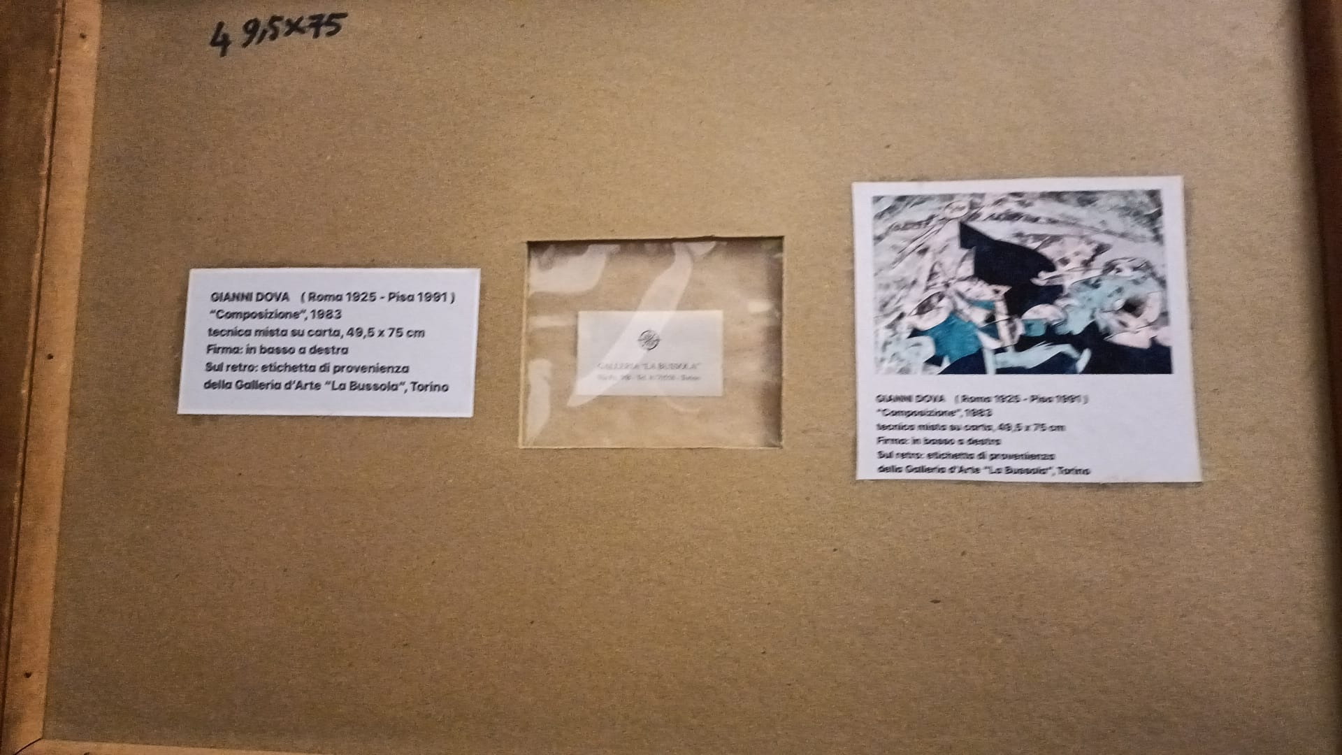 Provenienza Galleria d'arte la Bussola (To).