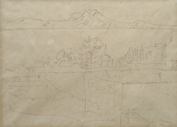Moses Levy (Tunisi, 1885 - Viareggio, 1968) PAESAGGIO China su carta, cm. 18x25 Firma in basso a destra.