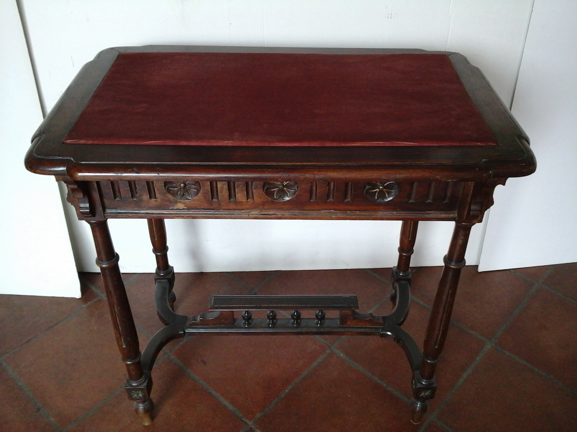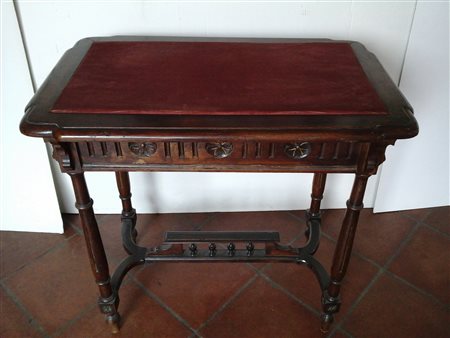 TAVOLINO IN NOCE CON PIANO IN VELLUTO INIZI XX SECOLO CM.80X50 H.CM.76