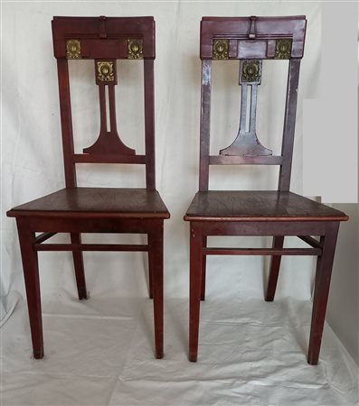 DUE SEDIE LIBERTY IN LEGNO CON APPLICAZIONI IN BRONZO H.CM.101