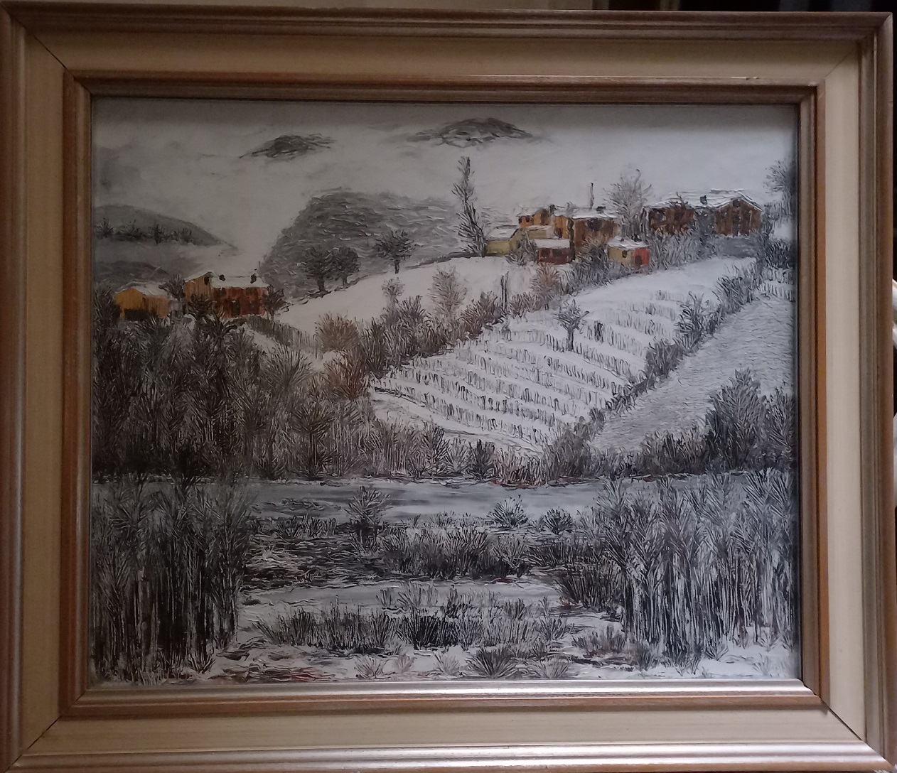 NEVICATA 1976 OLIO SU TELA CM.50X60 FIRMA INDECIFRATA E DATA AL RETRO