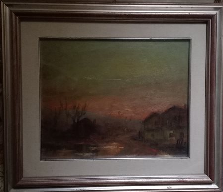 PAESAGGIO CON CASE - OLIO SU TAVOLA CM.34X42 FIRMA NON DECIFRATA AL RETRO