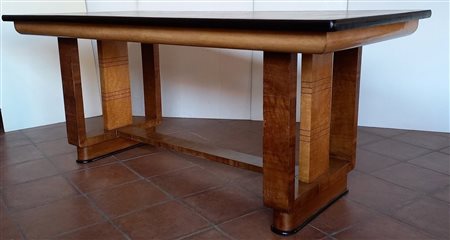 TAVOLO DA PRANZO IN RADICA CON FILETTATURE E PROFILI EBANIZZATI - ANNI 50 CM.182X92 H.CM.79