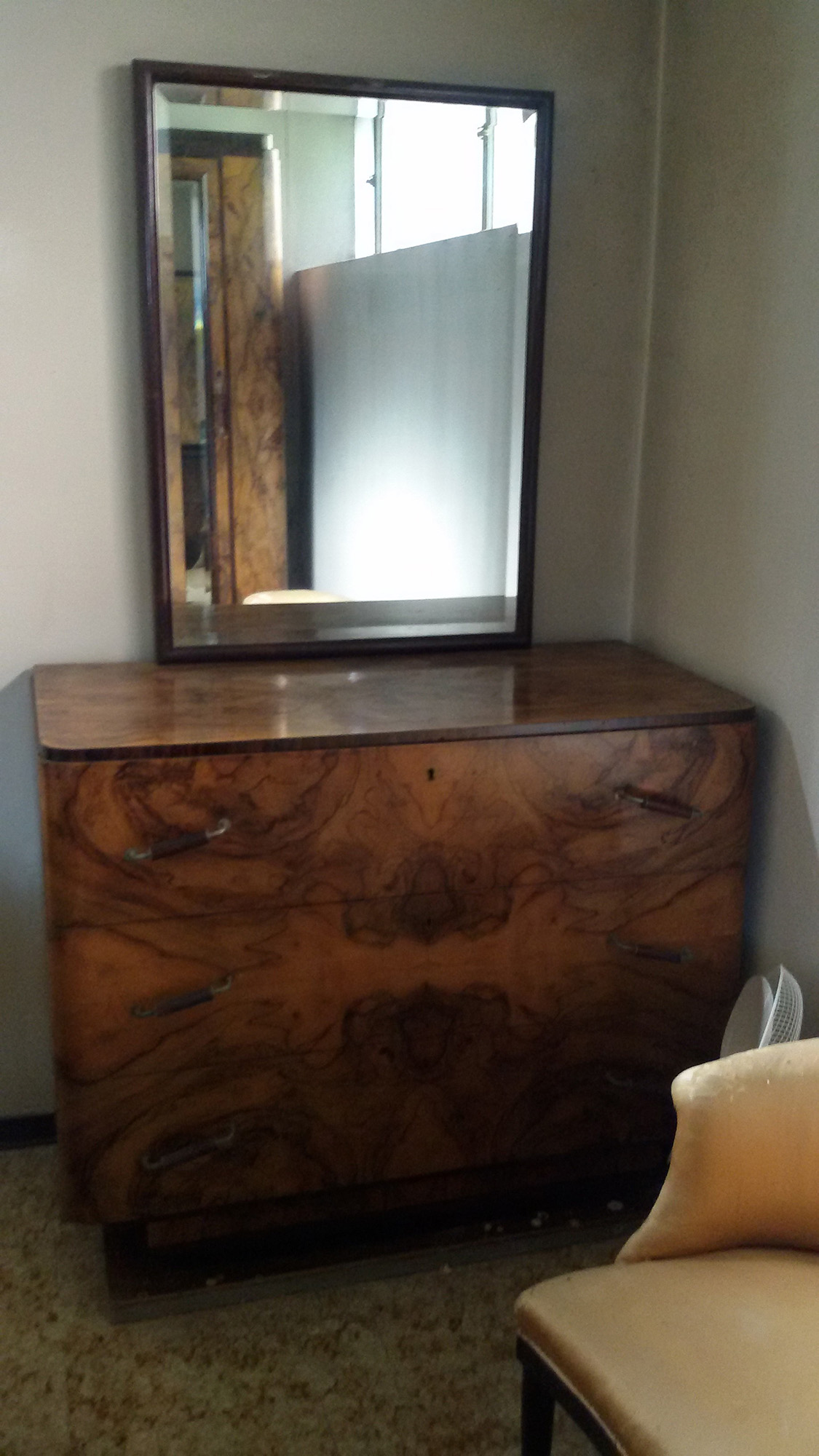 COMO' DECO IN RADICA DI NOCE CM.108X55 H.CM.91 E SPECCHIERA PERTINENTE CM.95X69