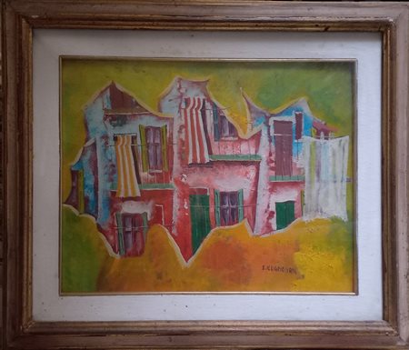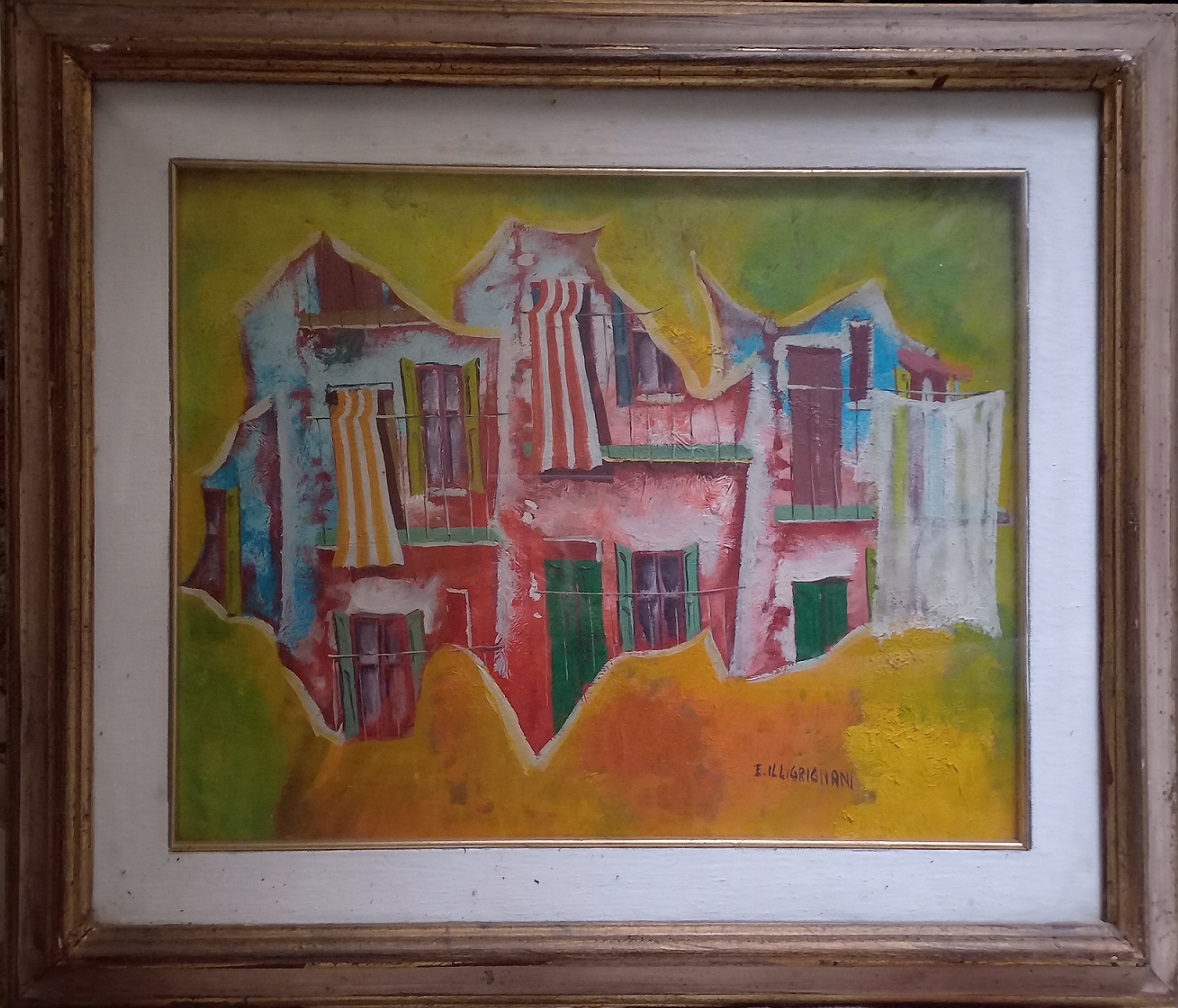 E. ILLIGRIGNANI - SCORCIO DI CASE OLIO SU FAESITE CM.40X50 FIRMATO IN BASSO A...