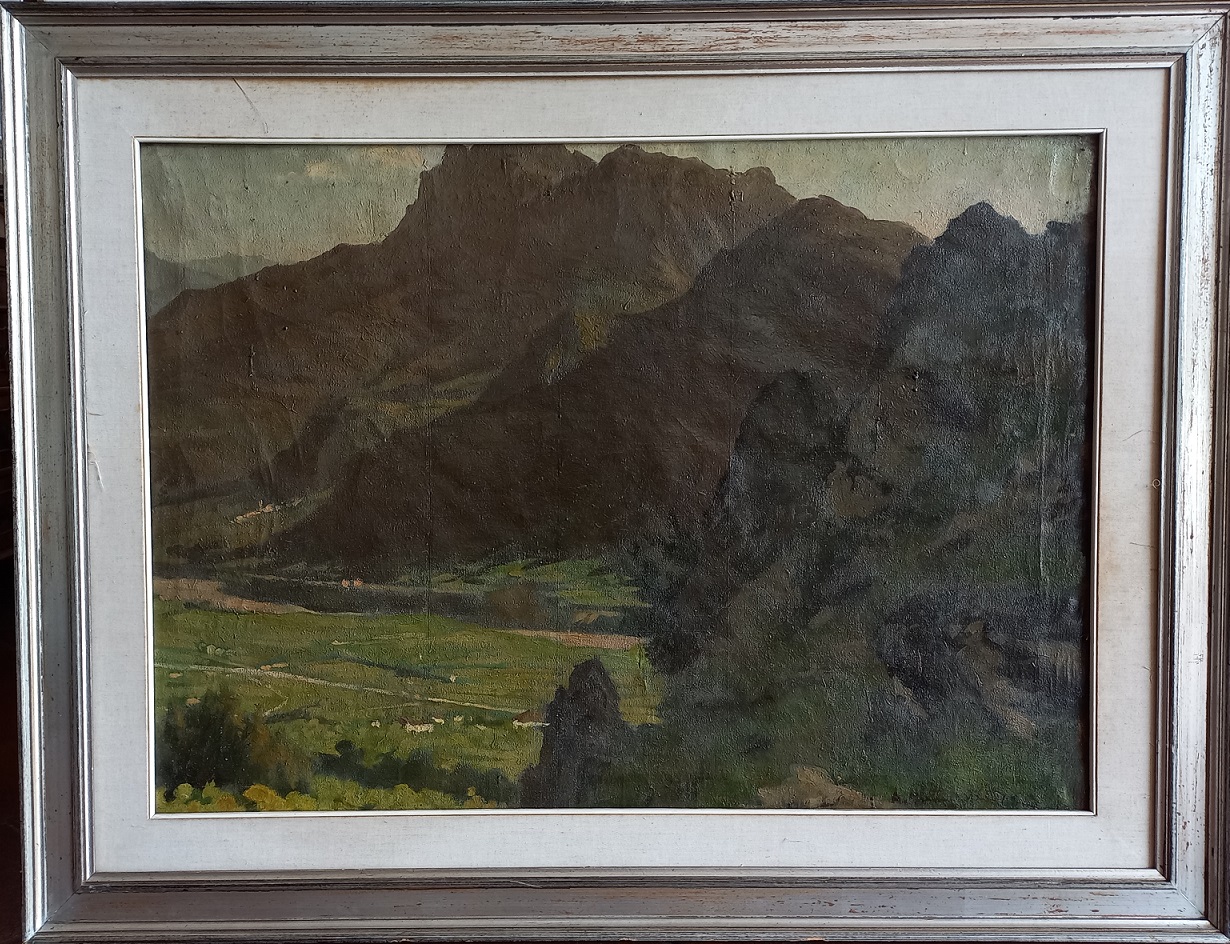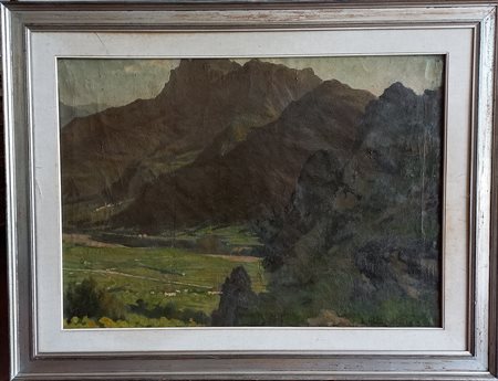 ALCIDE DAVIDE CAMPESTRINI (1863-1940) - LA VALSUGANA A CIVEZZANO OLIO SU TELA...